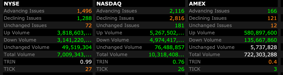 - NASDAQ volume 20% above its one-month average;