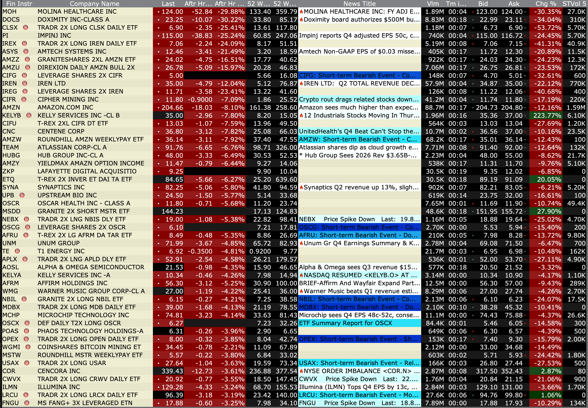 In the after hours I have taken a trading long rental in bitcoin ( (IBIT) at $35.72) on the oversold and potential panic and selling climax. Will remain flexible on trading it.