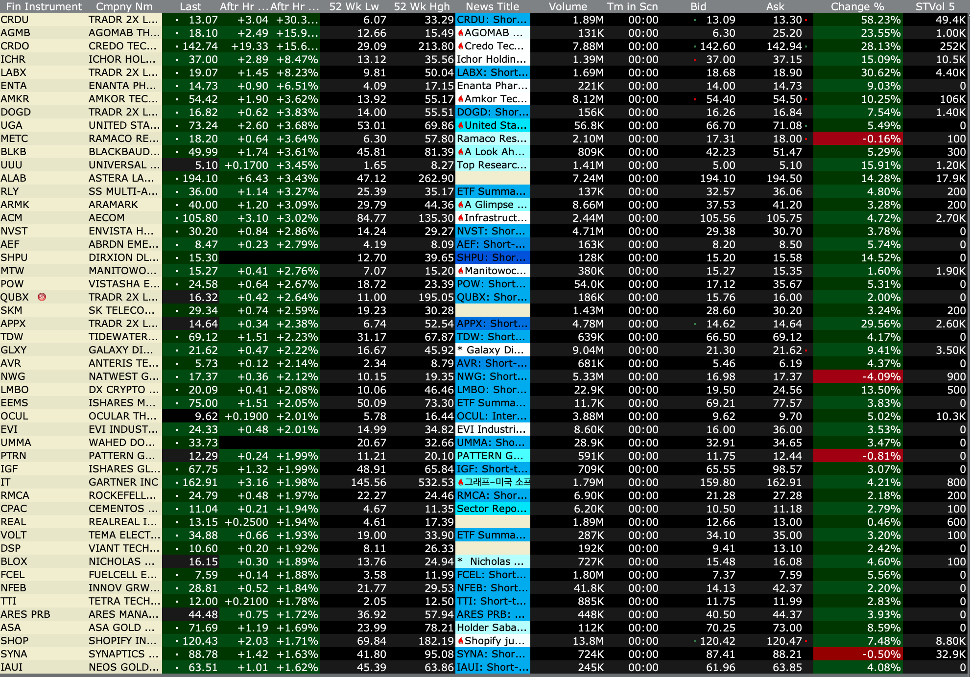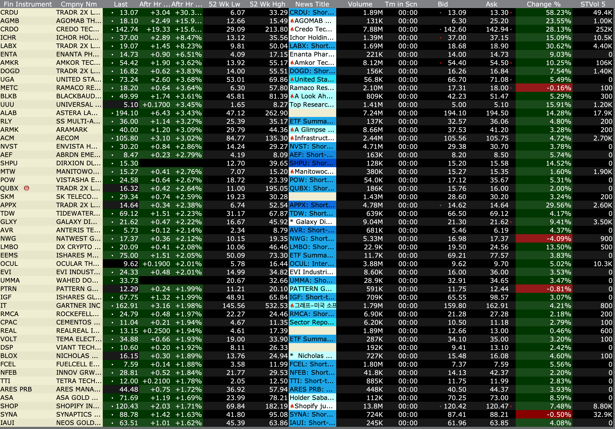 After-Hours Advancers and Decliners