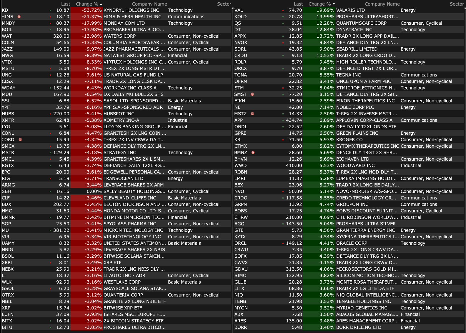 -HIMS -22% (Novo Nordisk takes legal action against Hims & Hers to protect patients from unsafe, knock-off Wegovy and Ozempic)