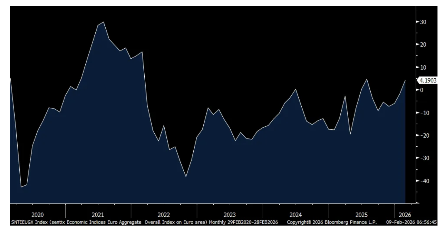 To the overseas data, the February Sentix Eurozone Investor Confidence index rose to +4.2 from -1.8. That’s the best level since last July. Sentix referred to this gain as “showing a silver lining for the Eurozone economy.” And, “Despite discussions about a gas shortage, the investors surveyed by Sentix are also extremely confident about the German economy.” Nothing market moving here but the investor mood music in Europe is getting better.