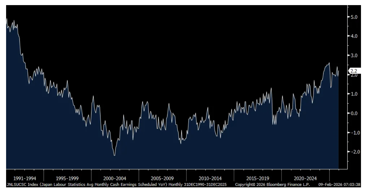 The popularity of Japanese Prime Minister Takaichi Sanae gave the LDP their largest majority position in parliament ever and the Nikkei responded in kind with a record high close, up 4% on the day, while JGB yields closed mostly higher (up for the 2s and 10s but little changed for 30s and 40s) as did the yen. We’ve already seen what initial policy initiatives will be implemented as another round of fiscal stimulus comes so no surprises from that perspective but the margin of victory was certainly impressive. The problem though with short term Keynesian policies is that it never is lasting in impact as policy permanency is a more effective driver of long term economic growth but we’ll see. She is a political rock star in Japan and will have free reign for now. I do expect more rate hikes from the Bank of Japan here as well as inflation remains the main concern of the Japanese populace. The 2 yr JGB yield closed up by 3 bps to 1.32%, a fresh 30 year high. Yes, 30 years.