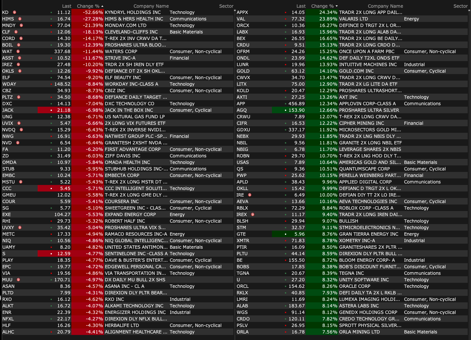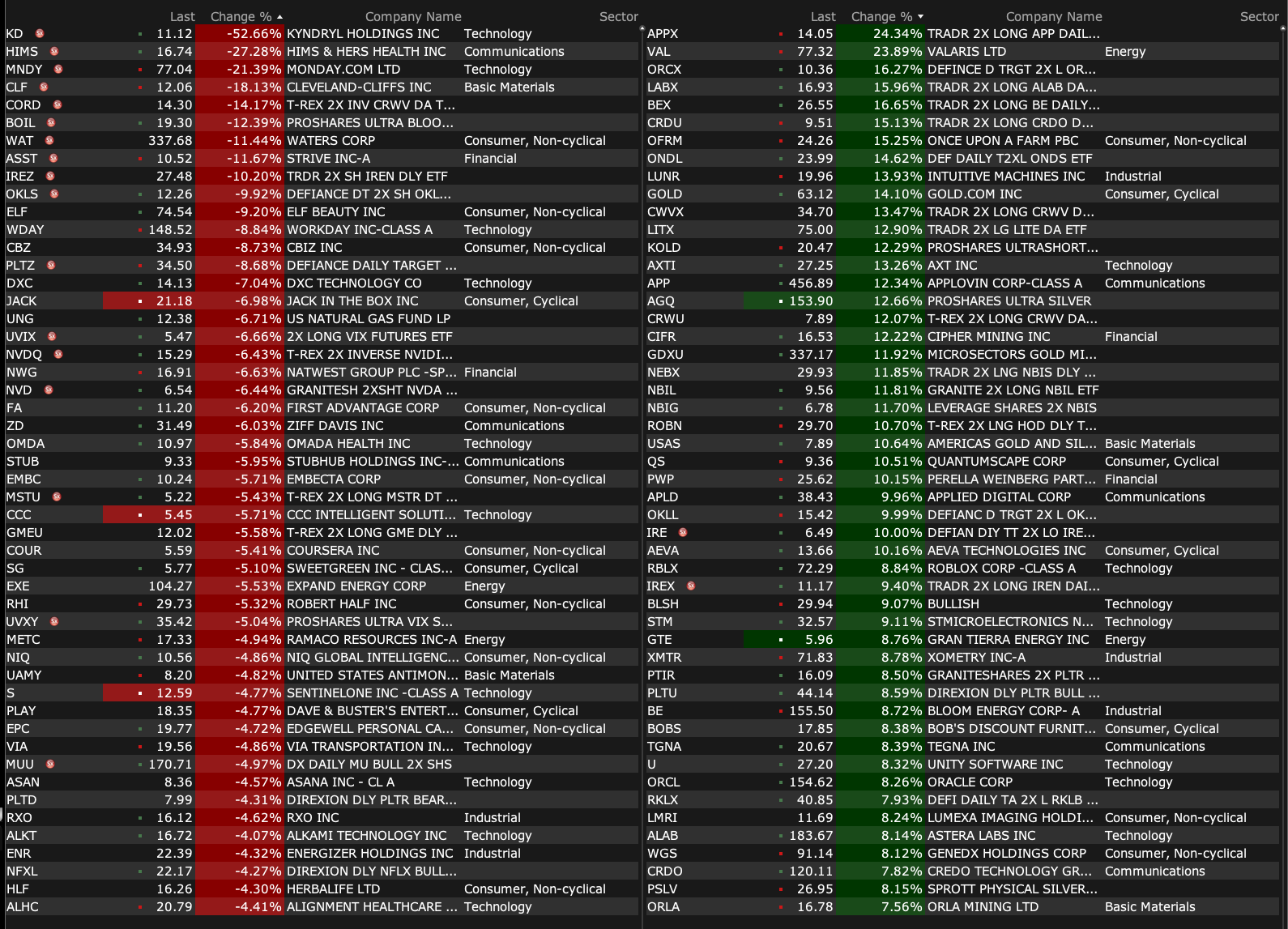 -RBLX +3.1% (ROTH Raised RBLX to Buy from Neutral, price target: $84)