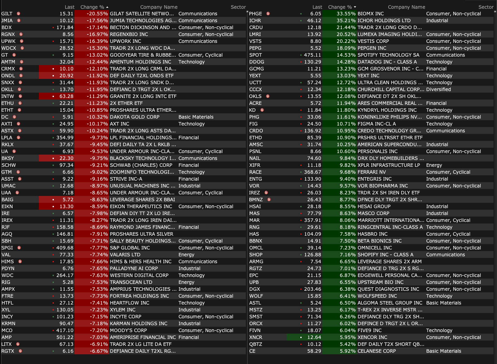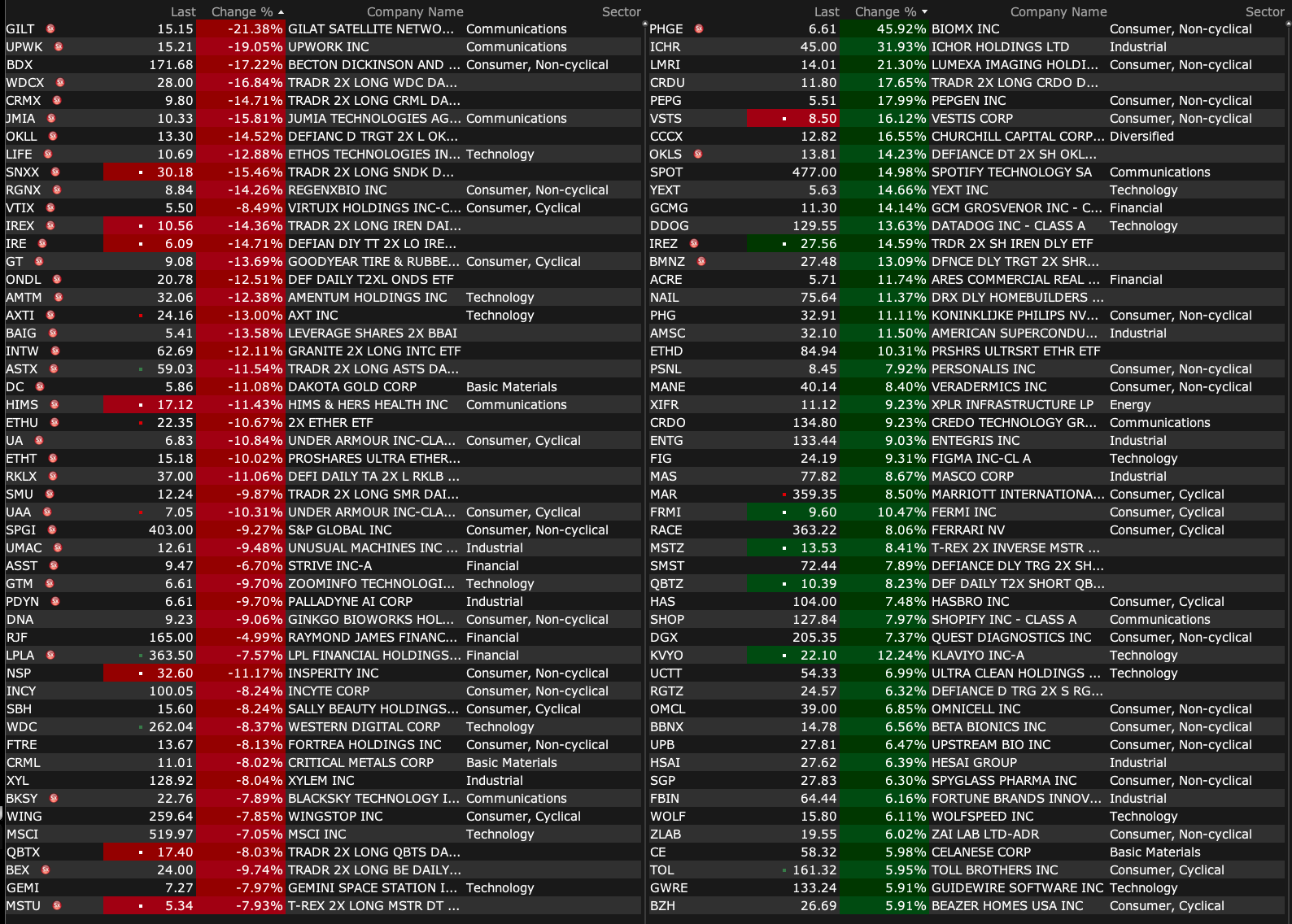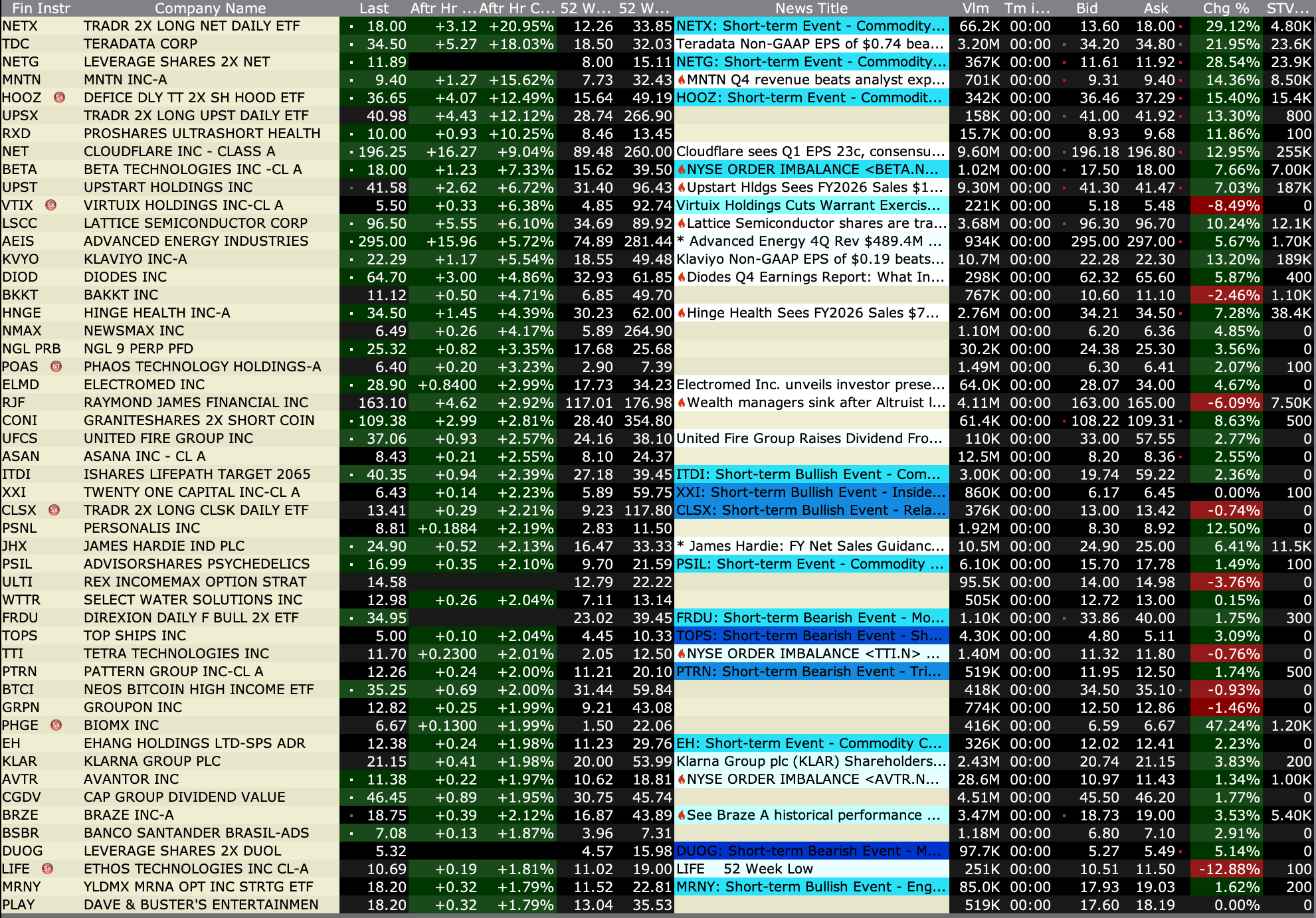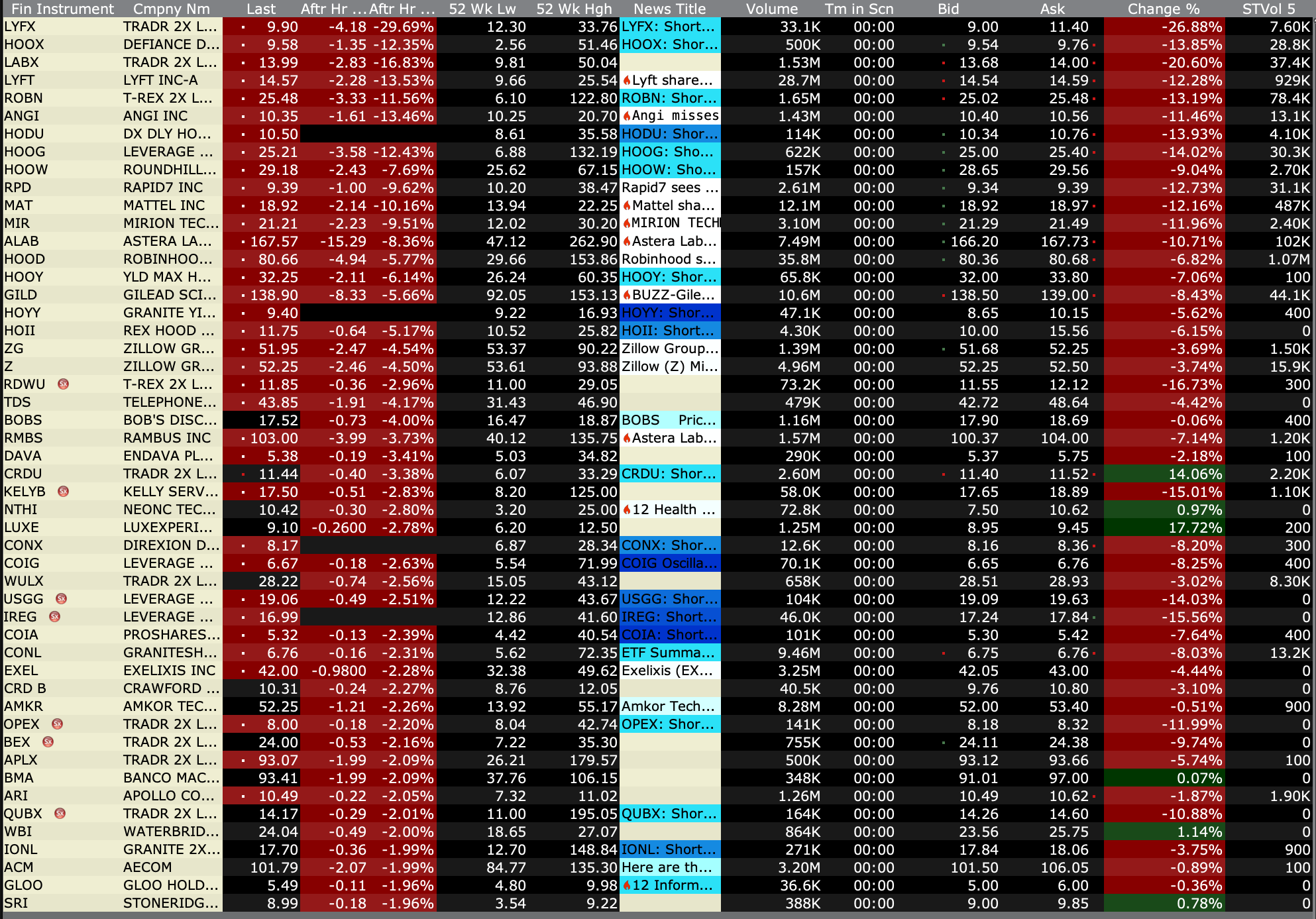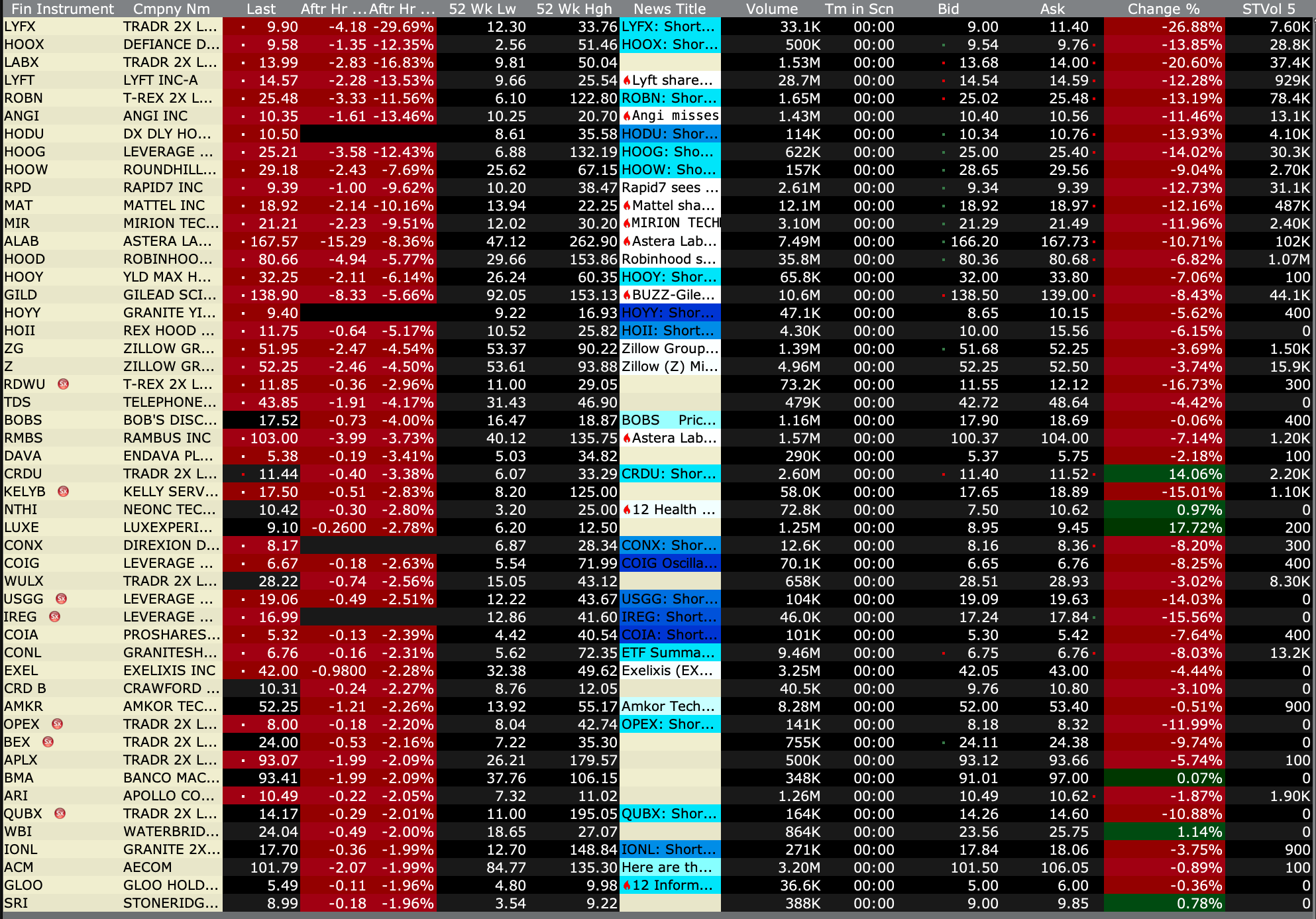 After-Hours Advancers and Decliners