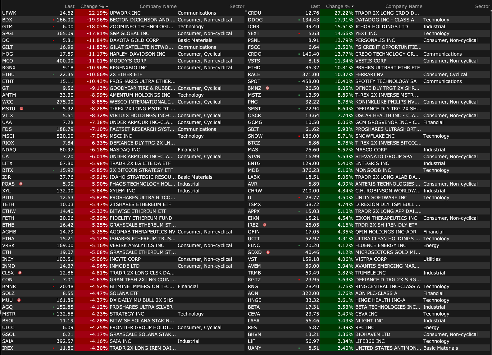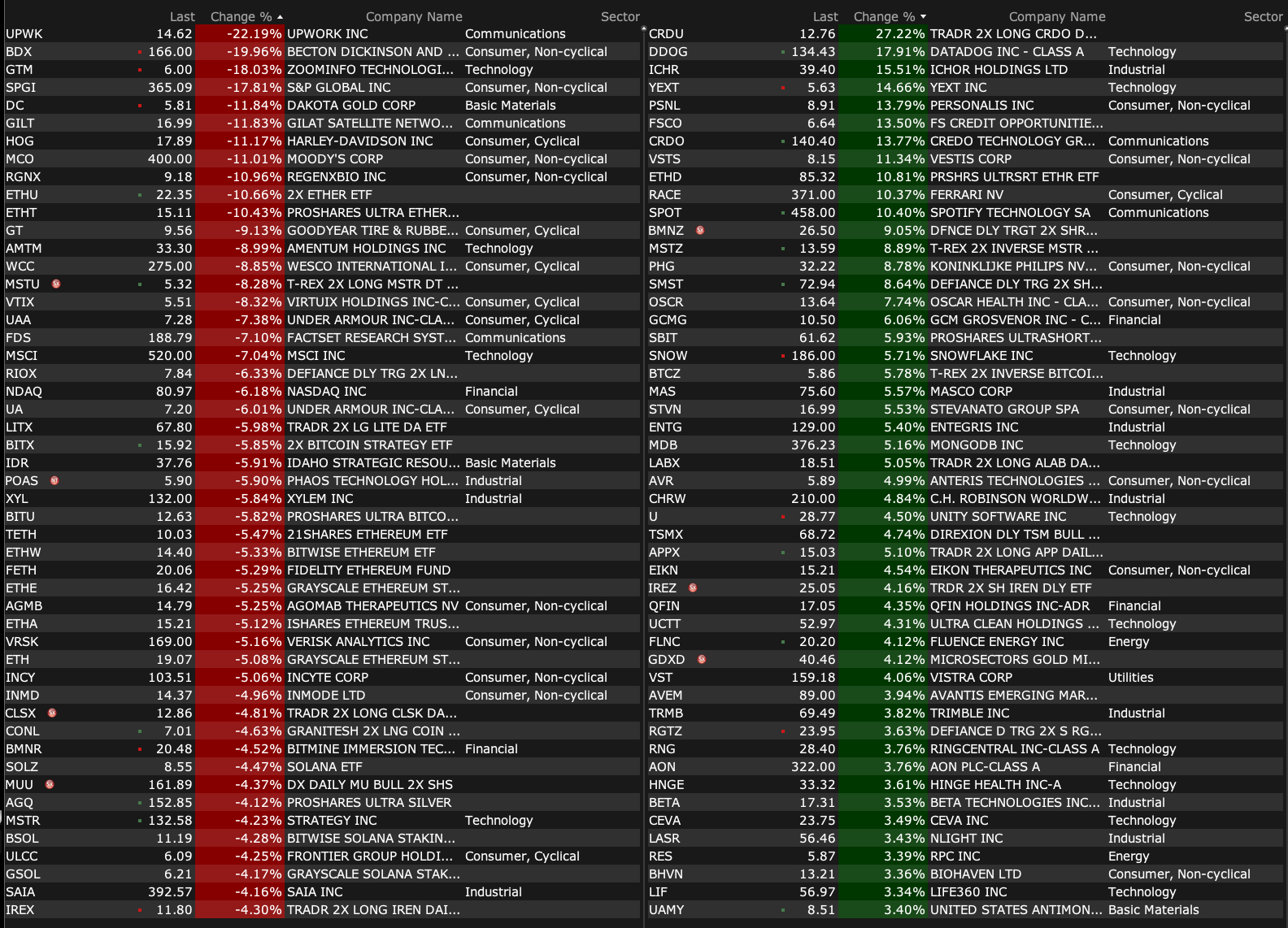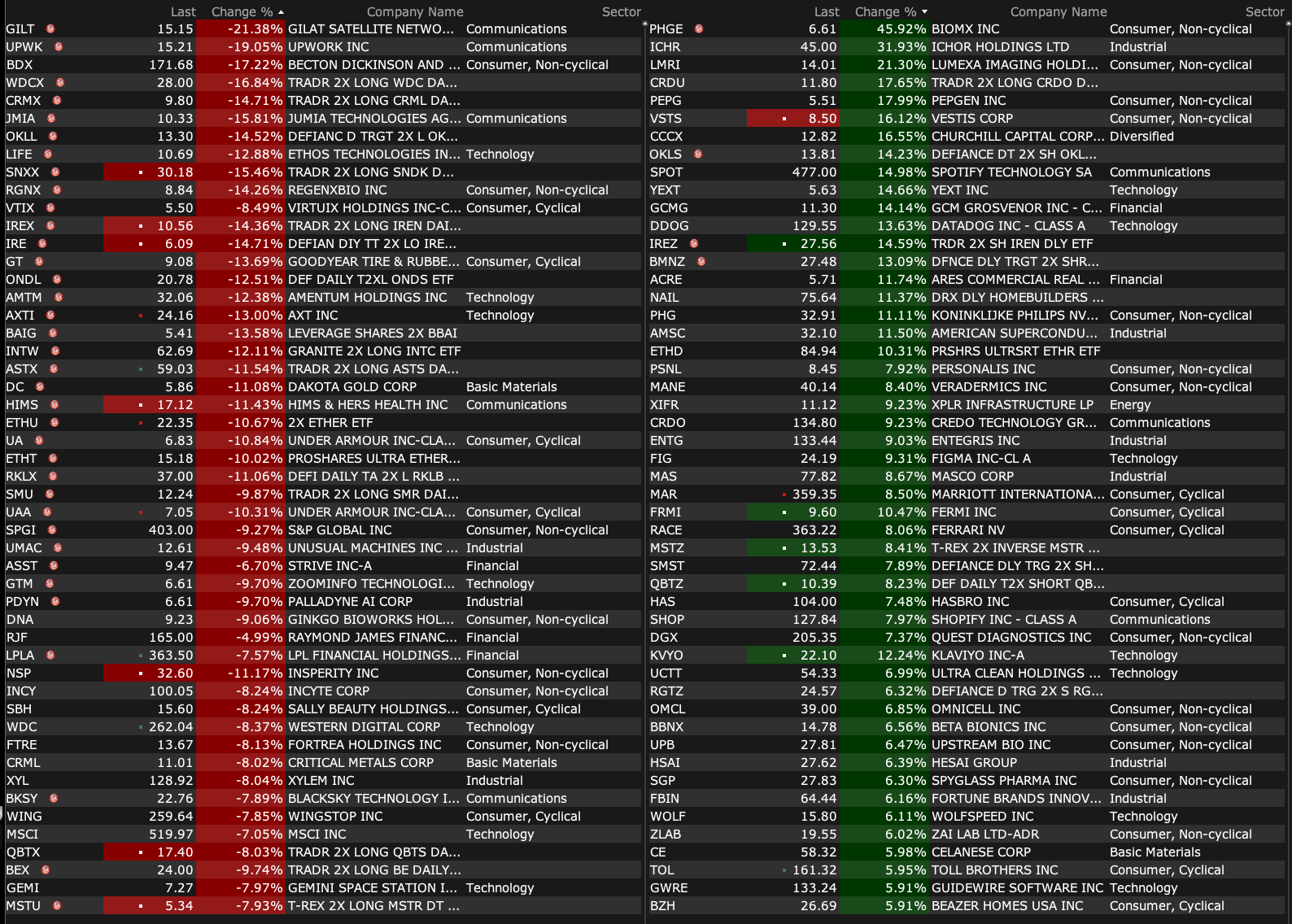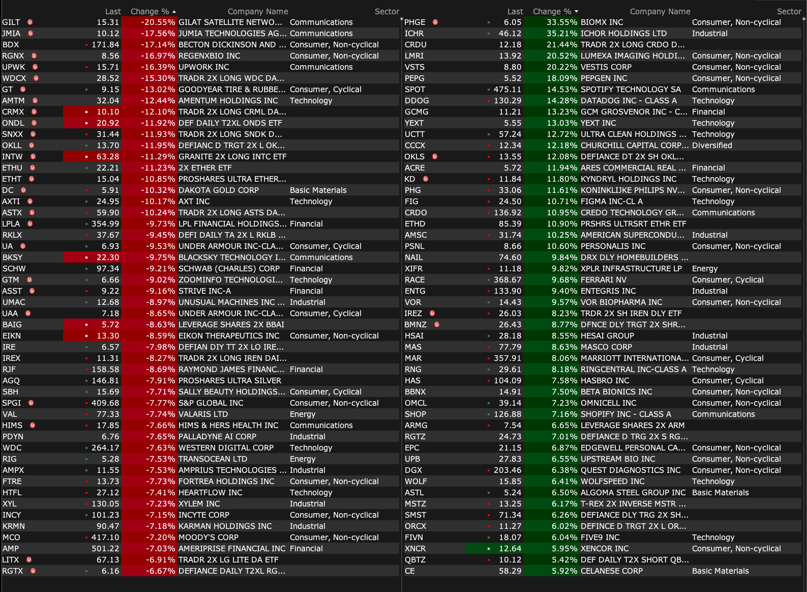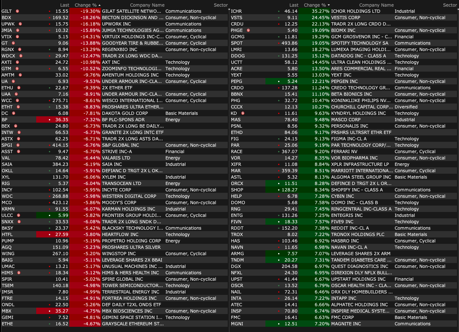 After-Hours Advancers and Decliners