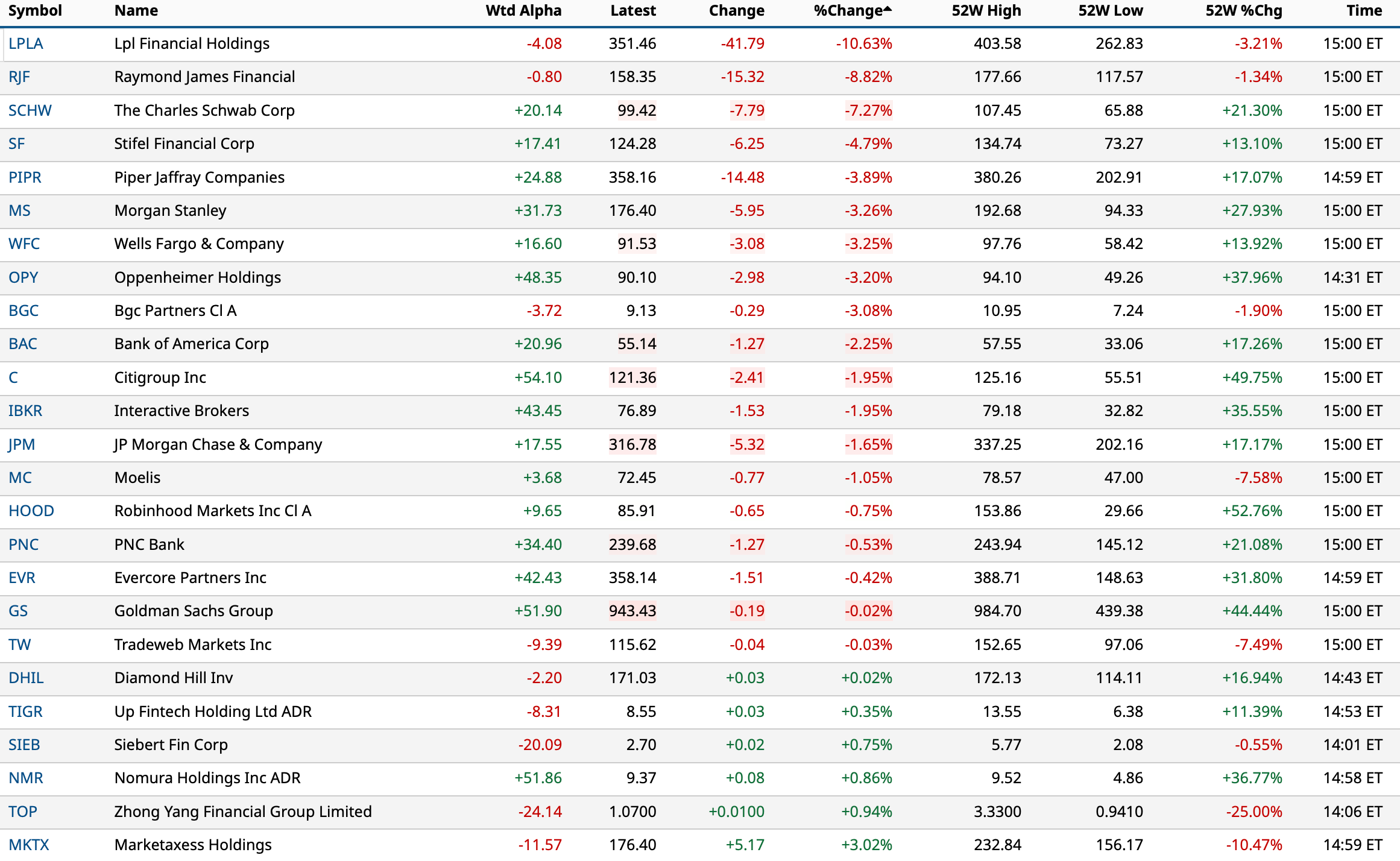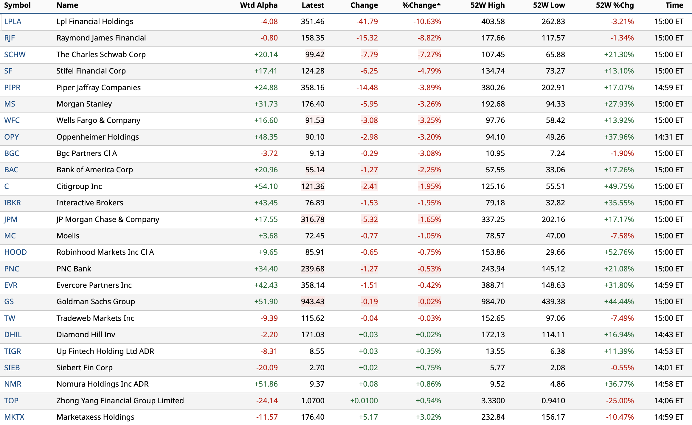 A closer look at the largest % decliners in financials after Altruist announced an artificial intelligence tool that it says can create personalized tax strategies by interpreting financial documents without manual entry.