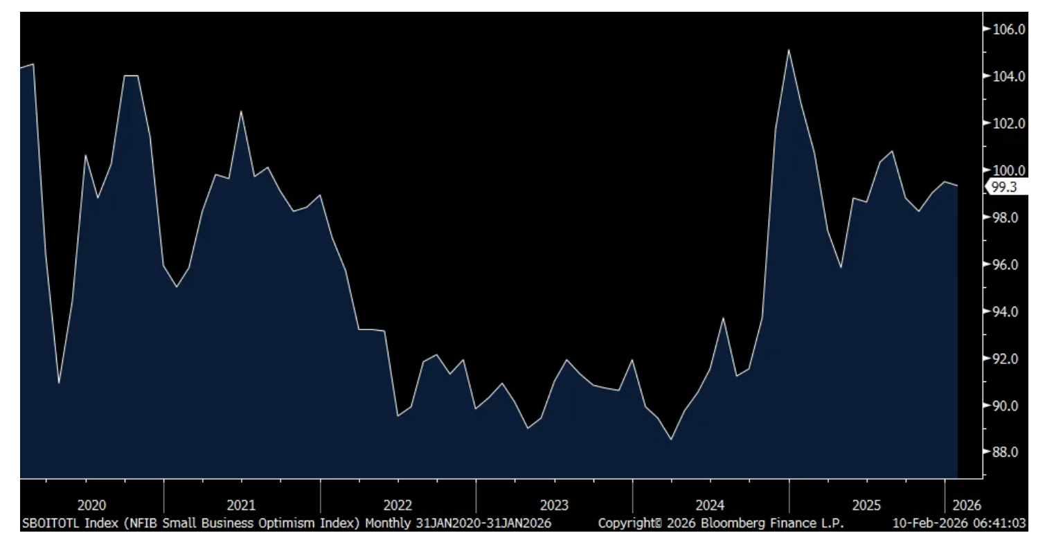 The January NFIB Small Business Optimism index fell a touch to 99.3 from 99.5 in December and 99 in November. Plan to Hire slipped 1 pt to 16% which is back to the 6 month average. Reflecting both less demand and supply for labor, Positions Not Able to Fill fell 2 pts to the lowest since July 2020 and 2017 pre Covid. Compensation rose 1 pt to the best since June but comp plans slipped 2 pts.