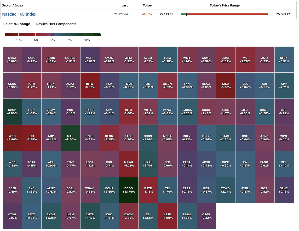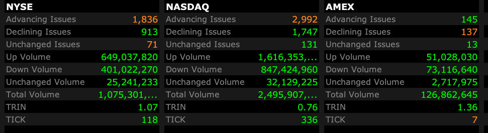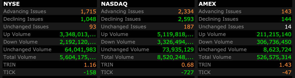 - Nasdaq volume 16% below its one-month average;