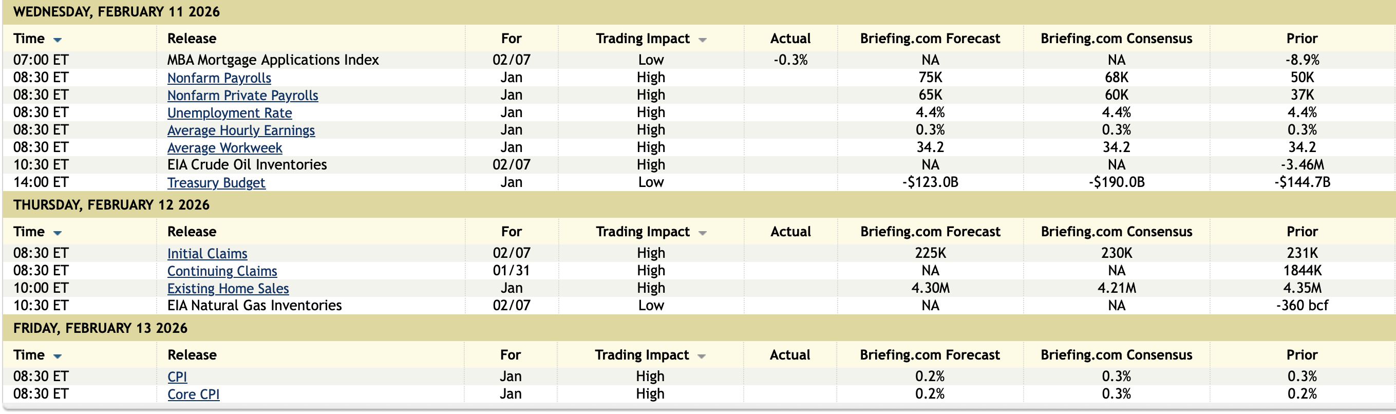 11:30 a.m.: Treasury hosts a $69 billion; 17-Week Bill Auction; 2:00 p.m.: Federal Budget Balance (January); 1:00 p.m.;Treasury hosts a $42B 10-Year Note Auction
