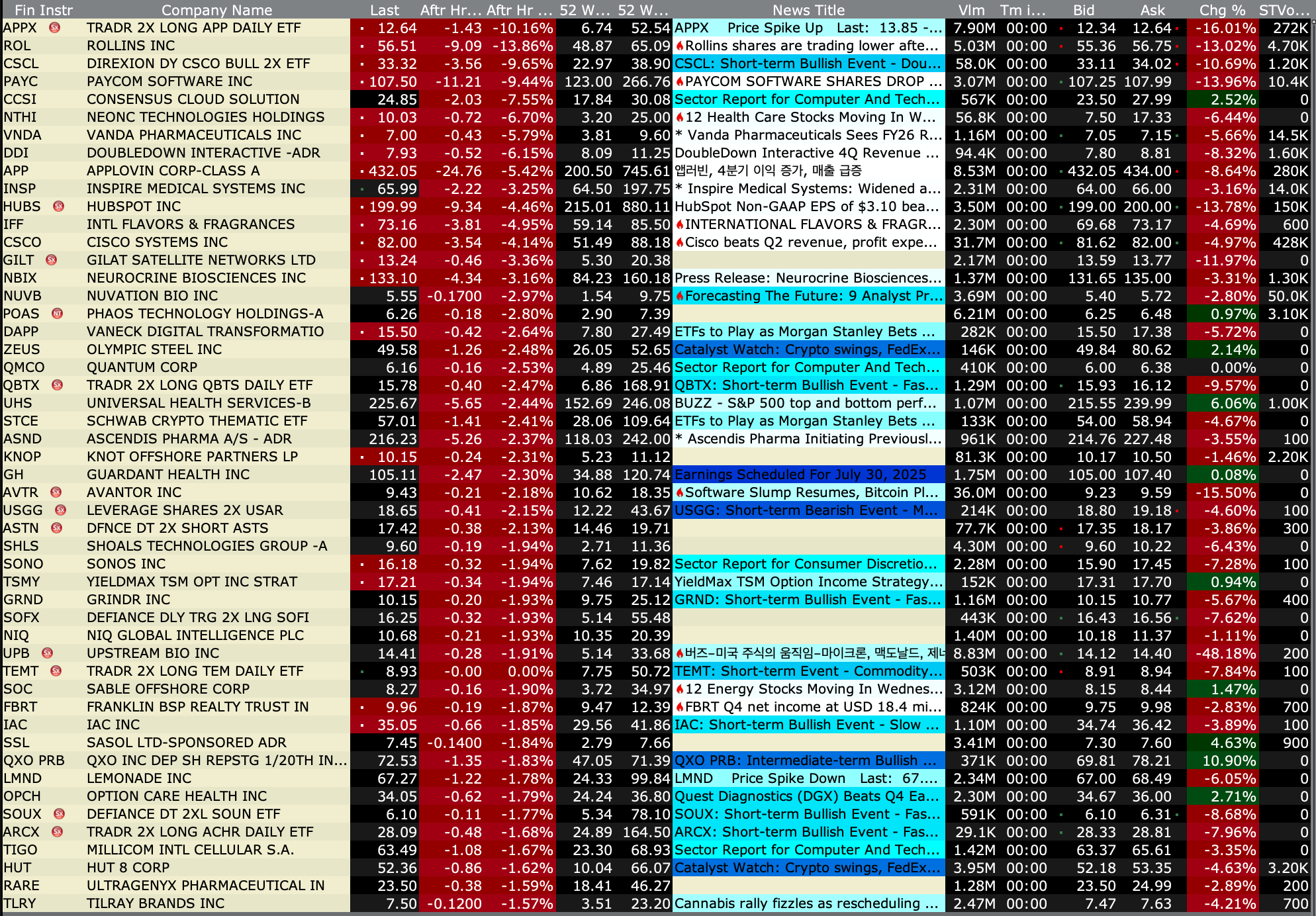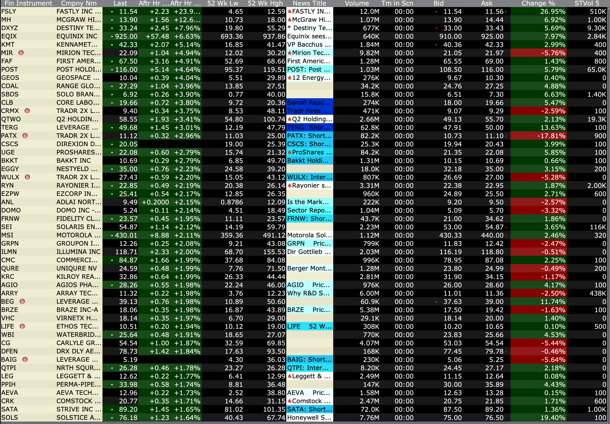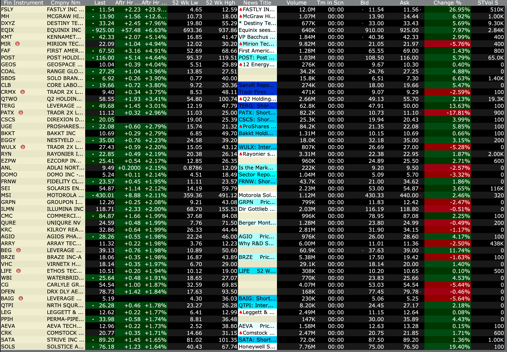 After-Hours Advancers and Decliners