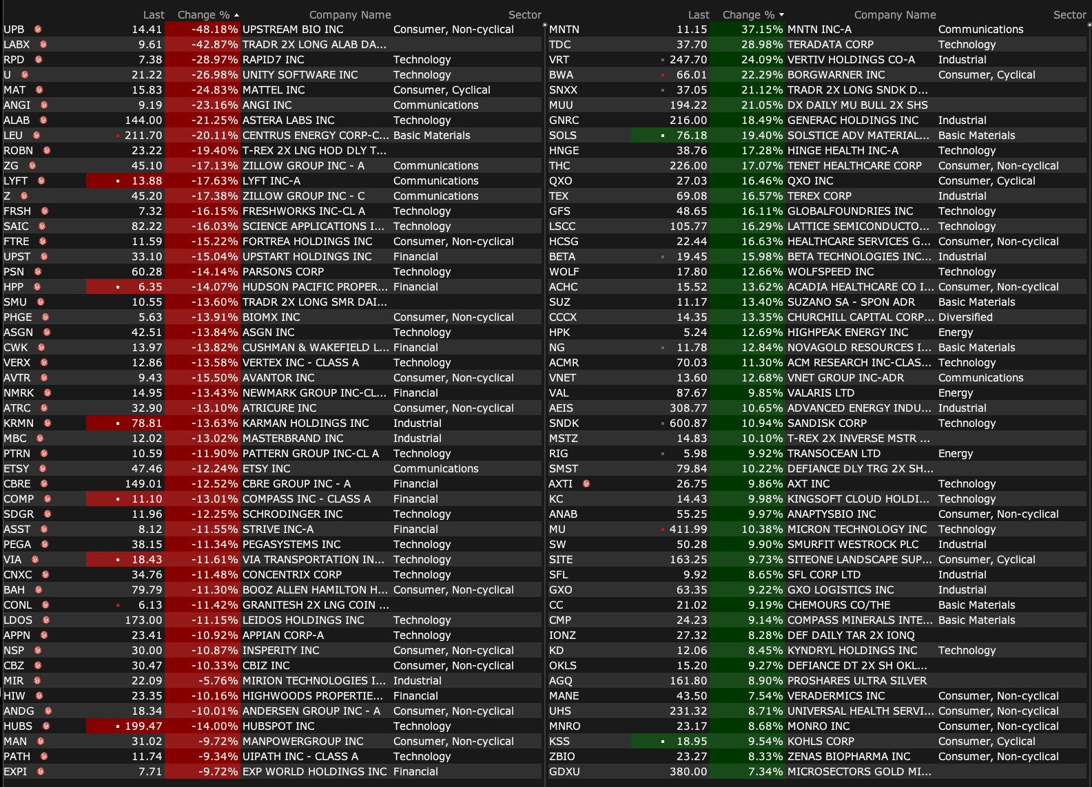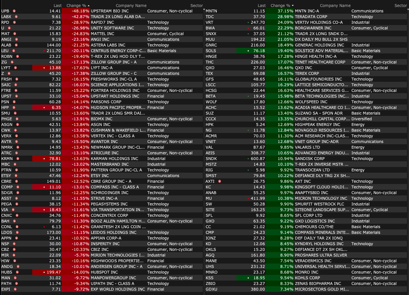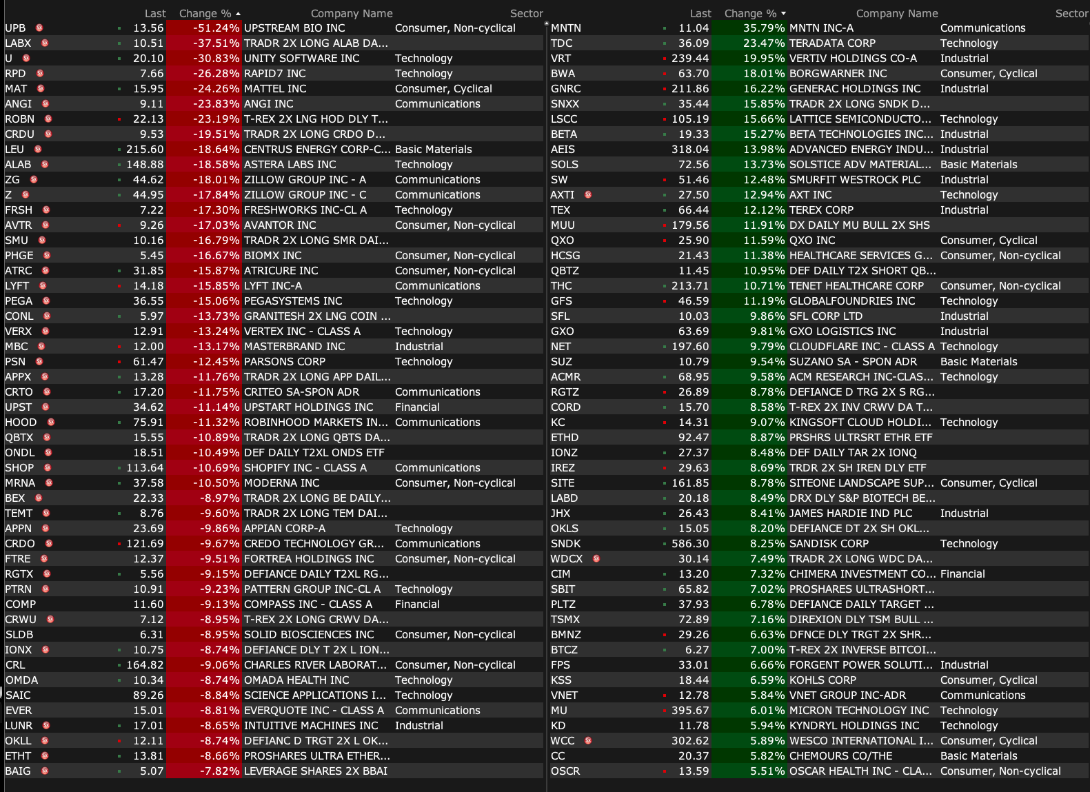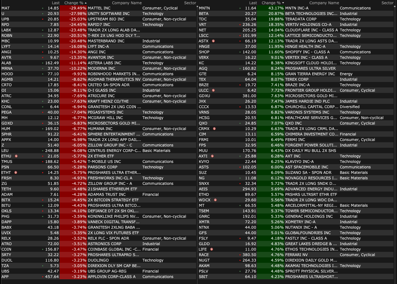 After-Hours Advancers and Decliners