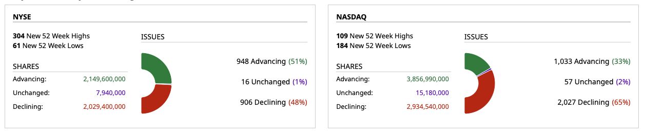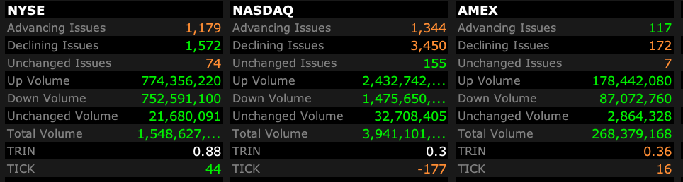 - Nasdaq volume 20% above its one-month average;
