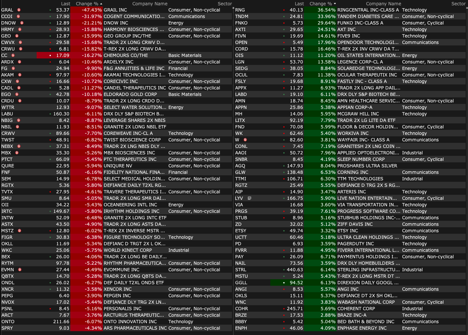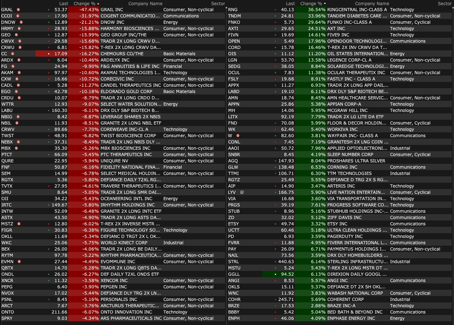 -TWST -6.7% (downside momentum)