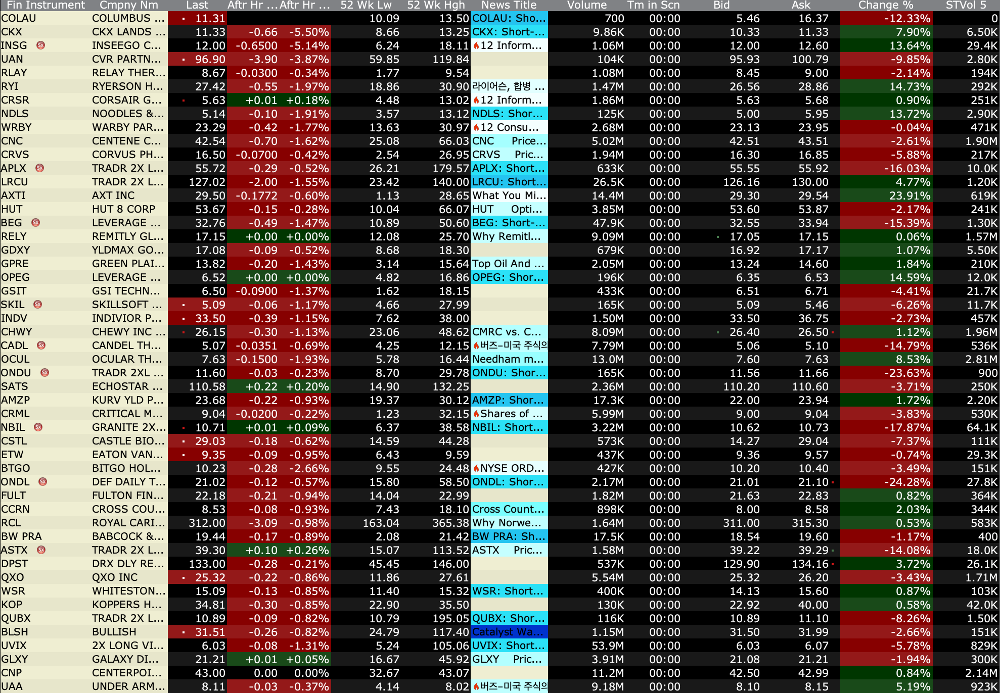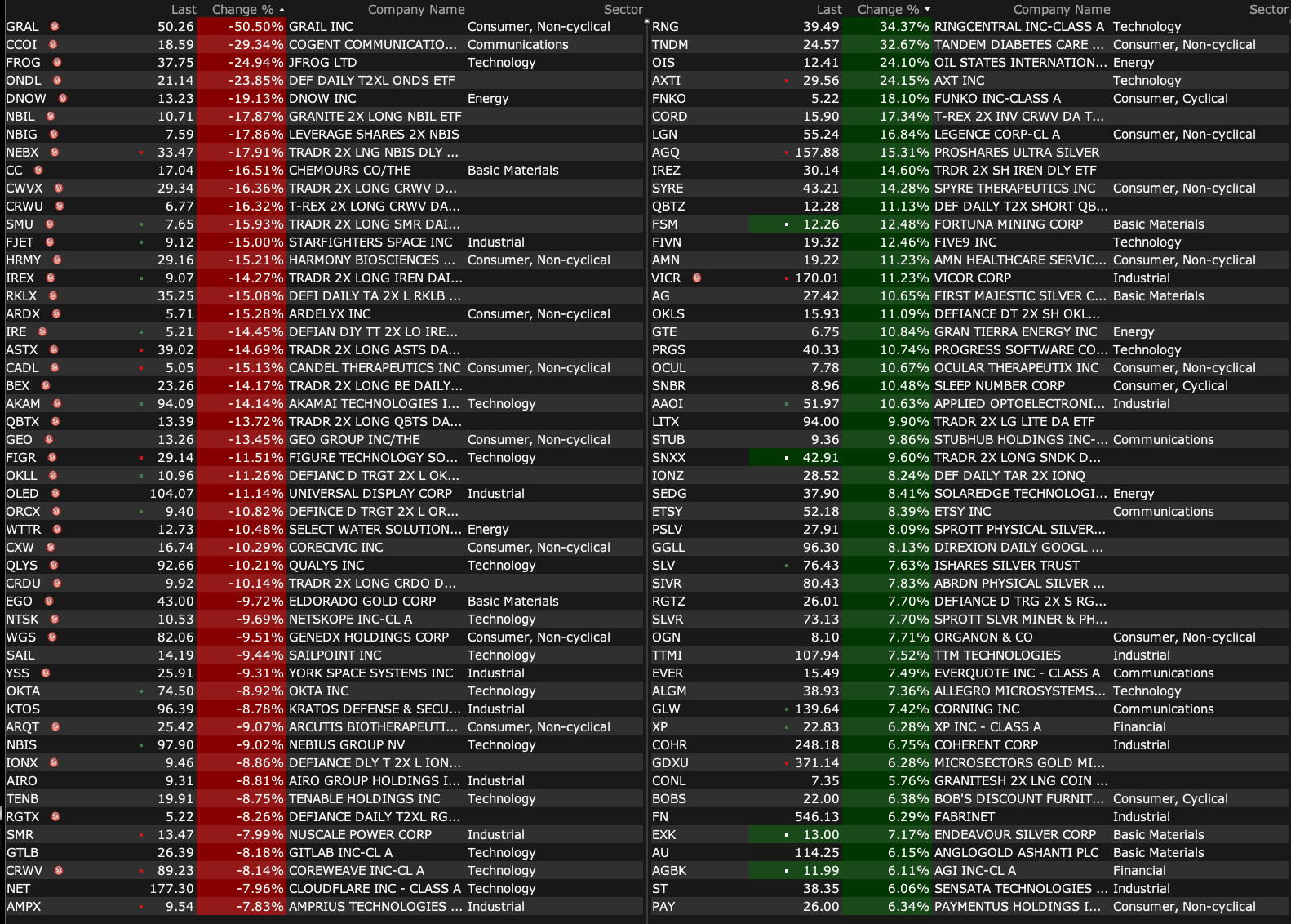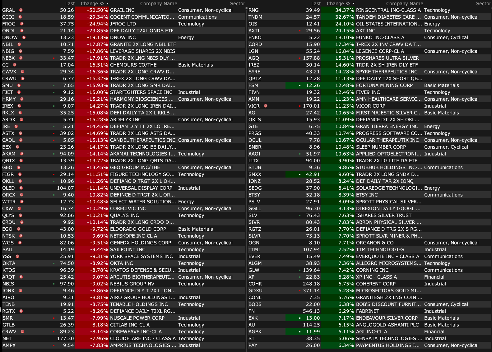 After-Hours Gainers and Decliners