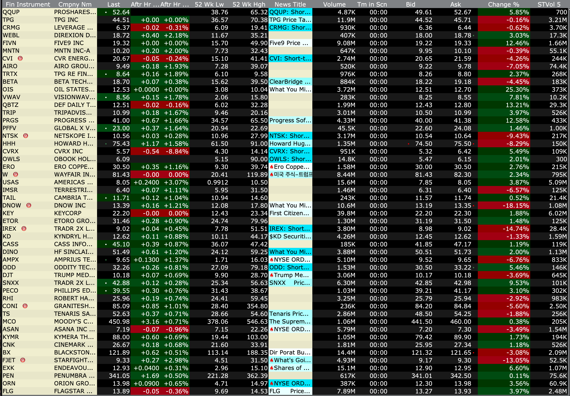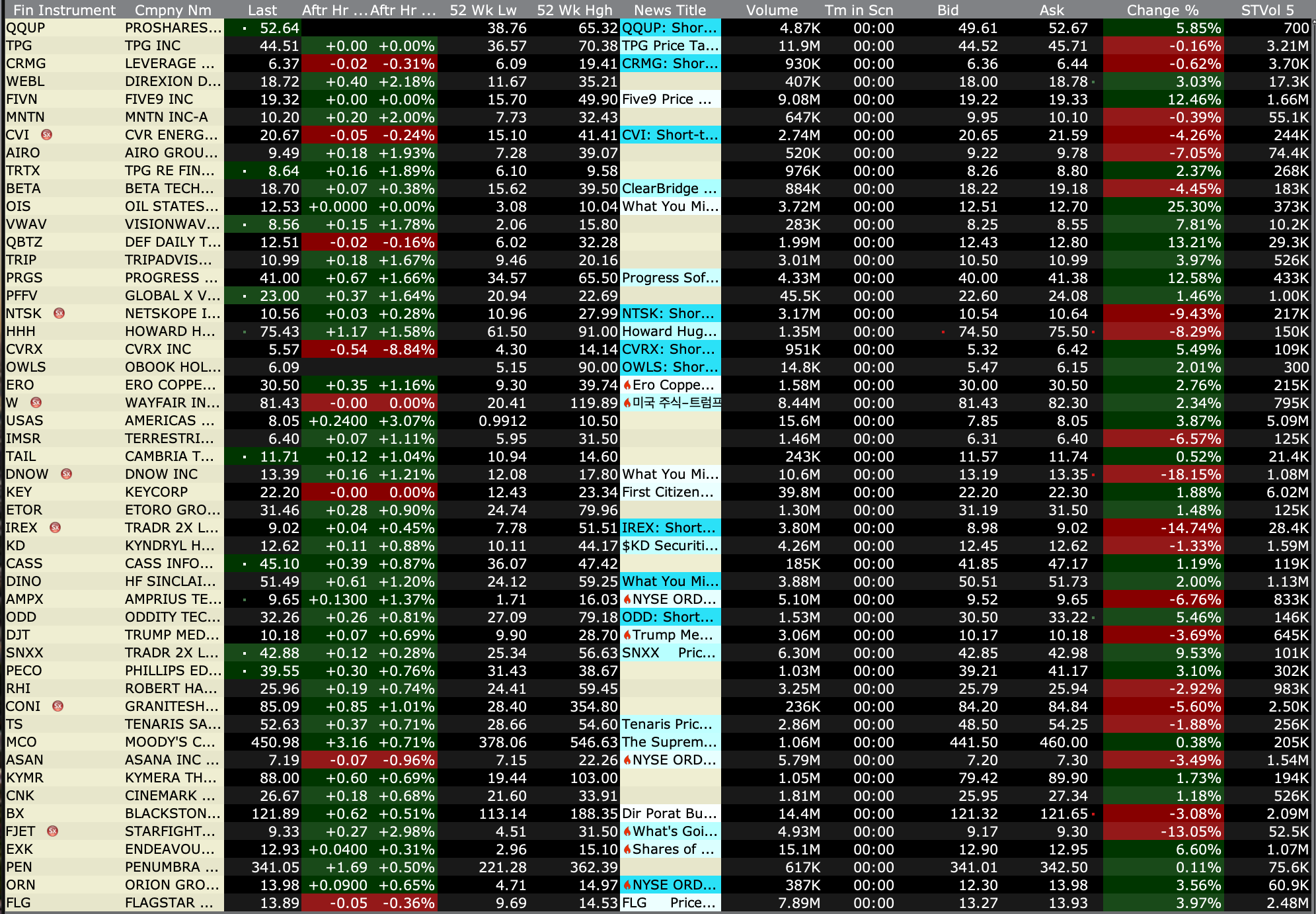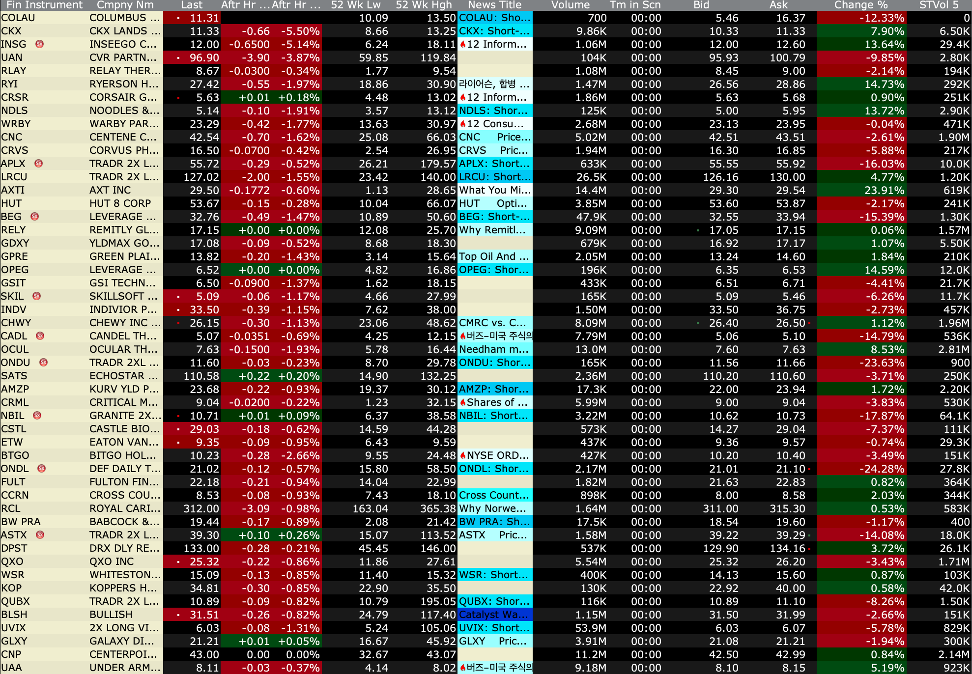 After-Hours Gainers and Decliners