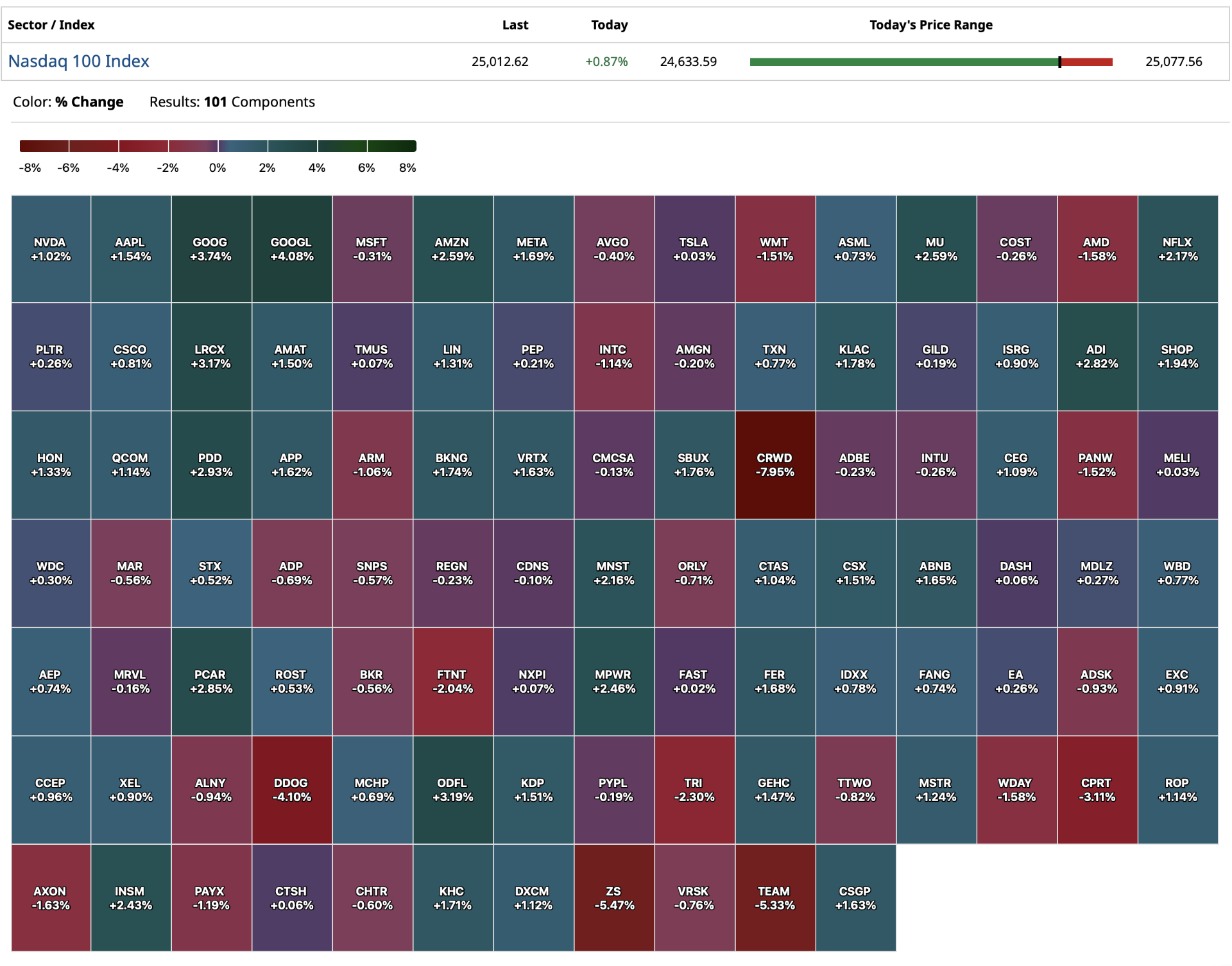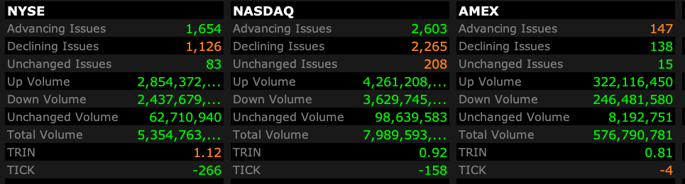 - NASDAQ volume 8% below its one-month average;