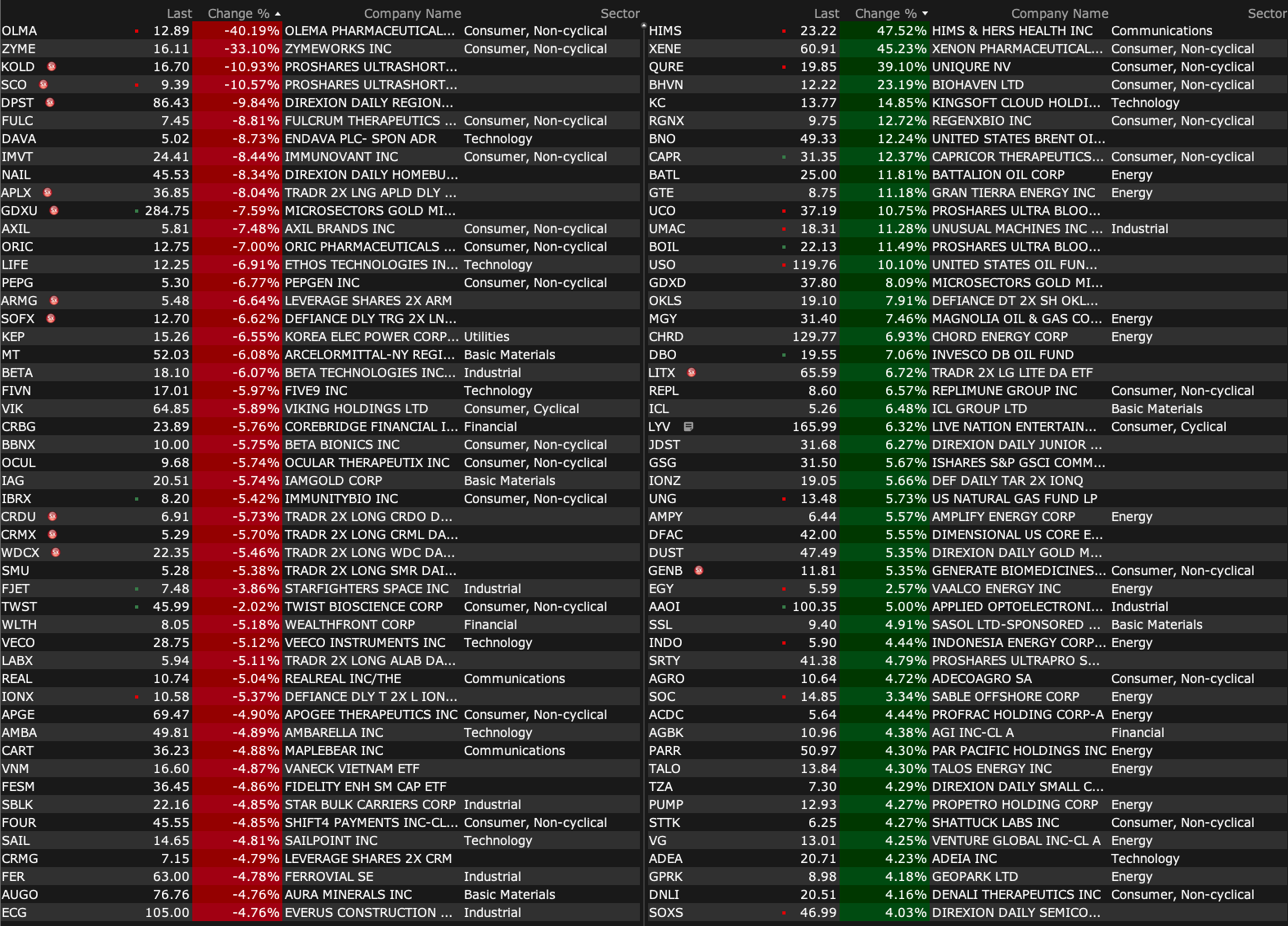-MGY +2.3% (oil and gas strength)