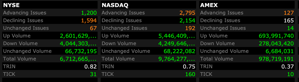 - NASDAQ volume 10% above its one-month average
