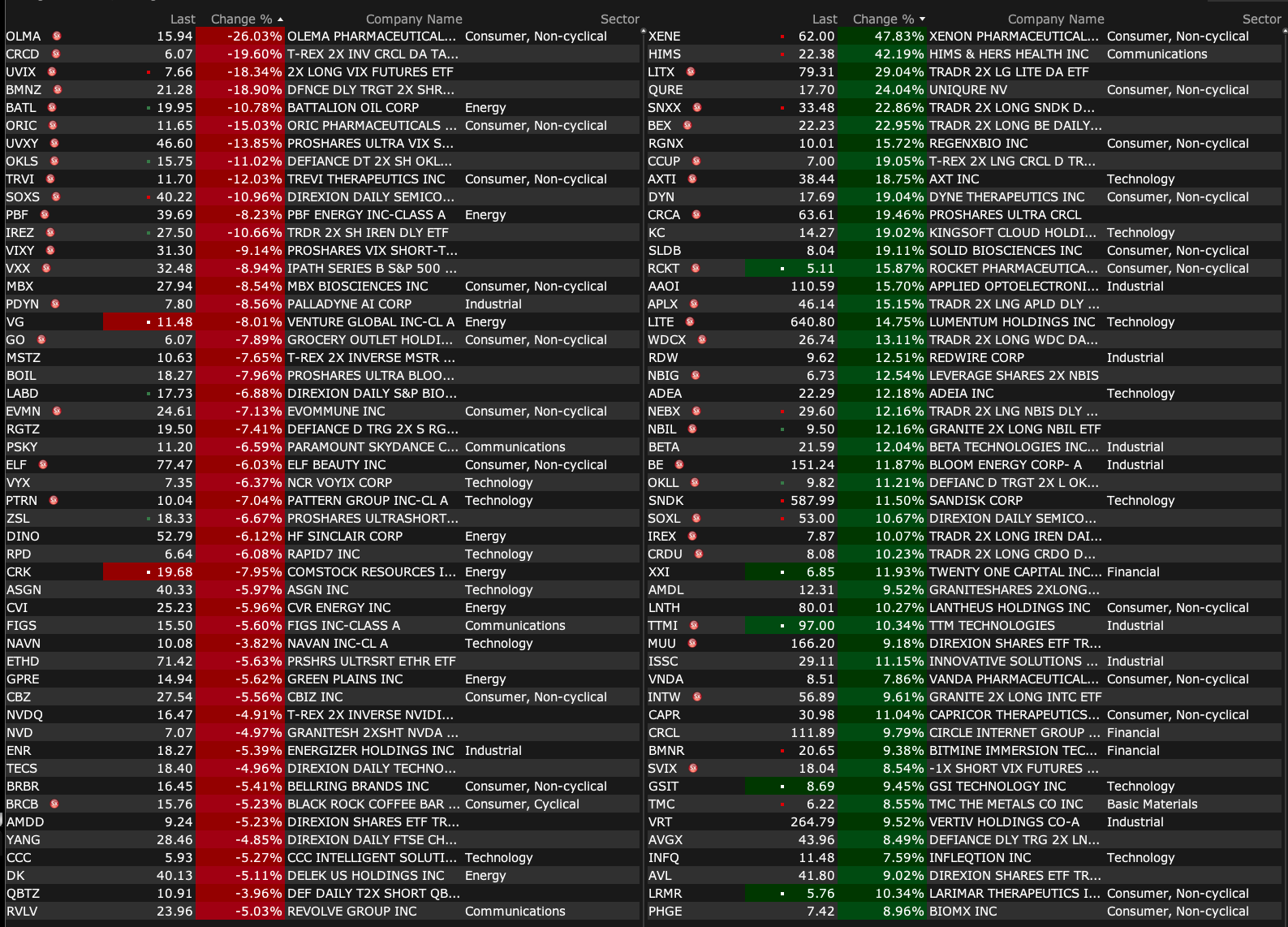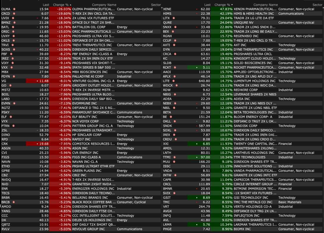 -VRT +3.4% (to be added to S&P 500 Index)