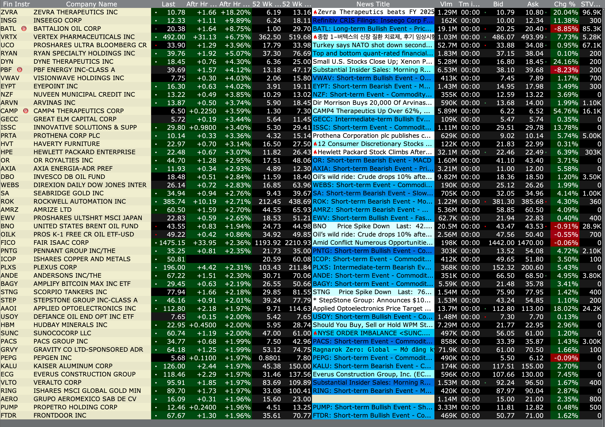 After-Hours Advancers and Decliners
