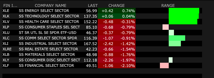 * Shorted (XLE) at $58.28 (premarket) covered at $57.35