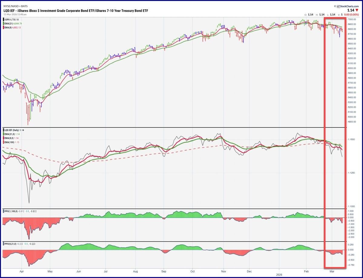 When Treasuries begin to outperform corporate credit, it marks a shift toward safety and away from risk.