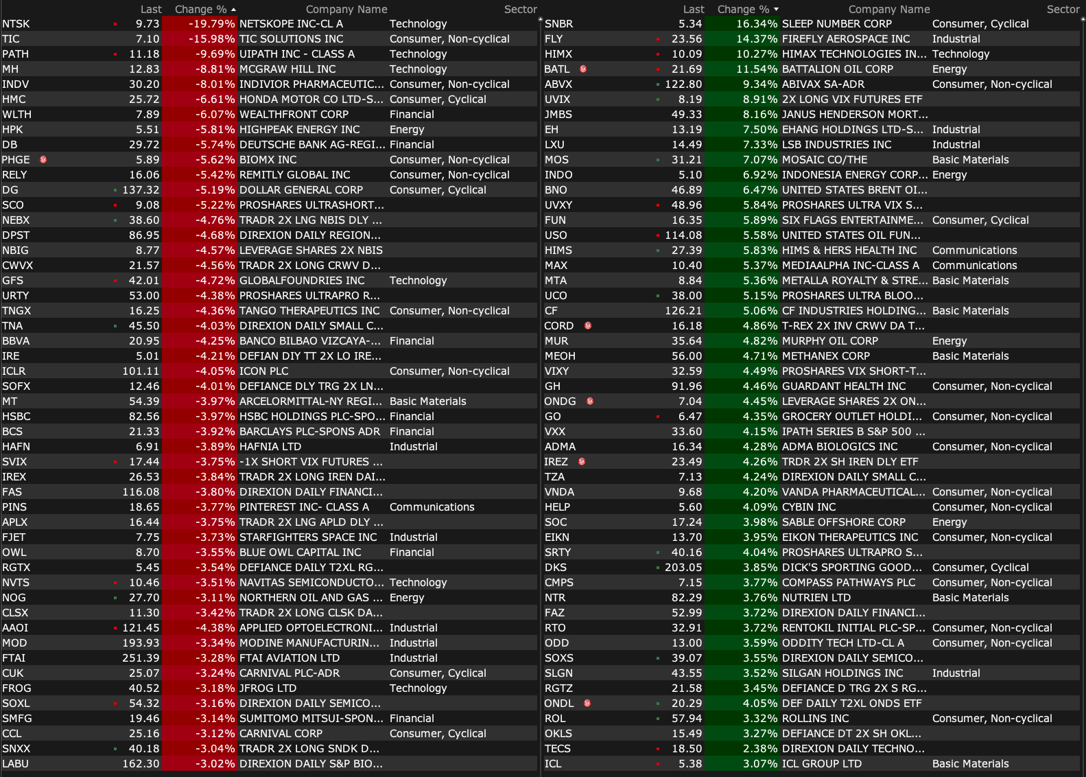 -OWL -2.6% (reportedly Blue Owl Capital is doubling down on AI infrastructure investments, including loans to two more data centers)
