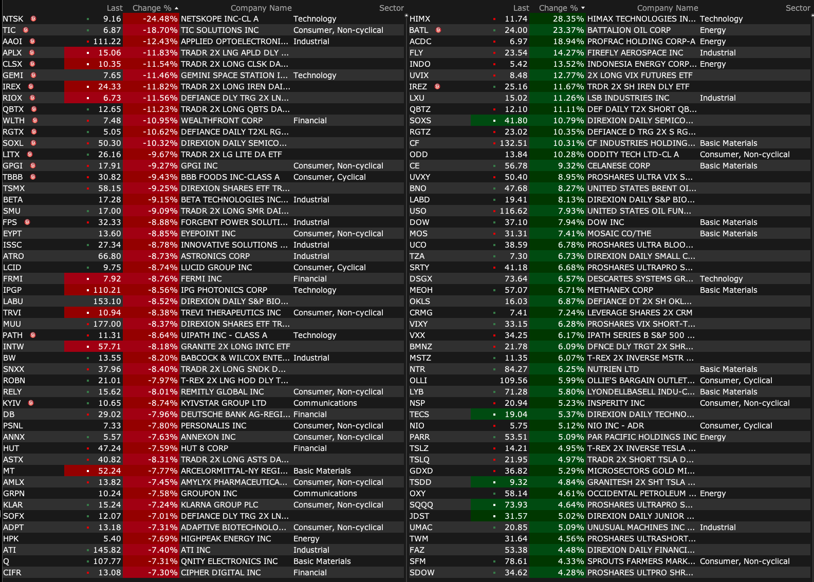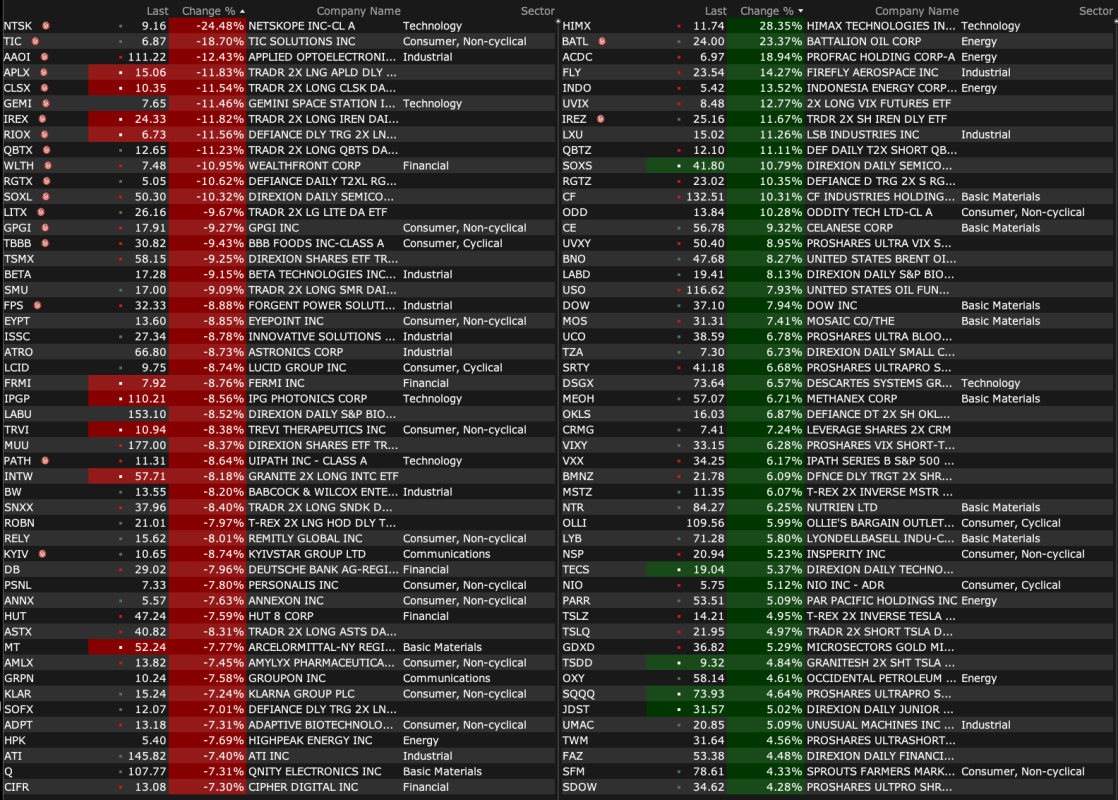 -AAOI -8.0% (optical and data center names following Citrini Research report)