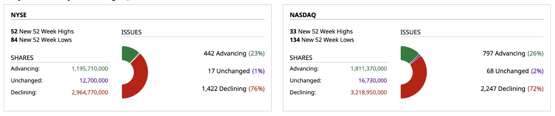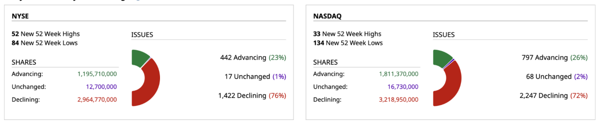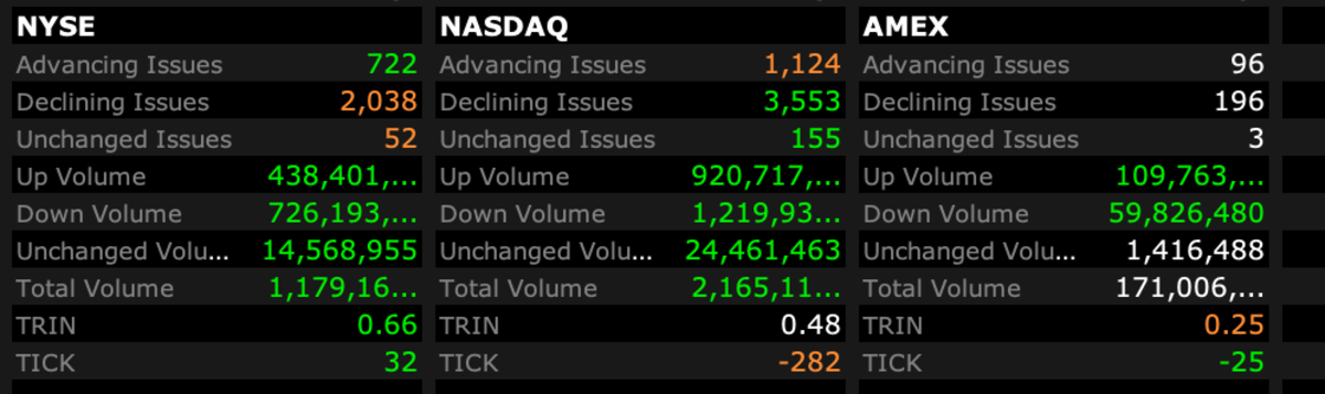 - NASDAQ volume 6% below its one-month average
