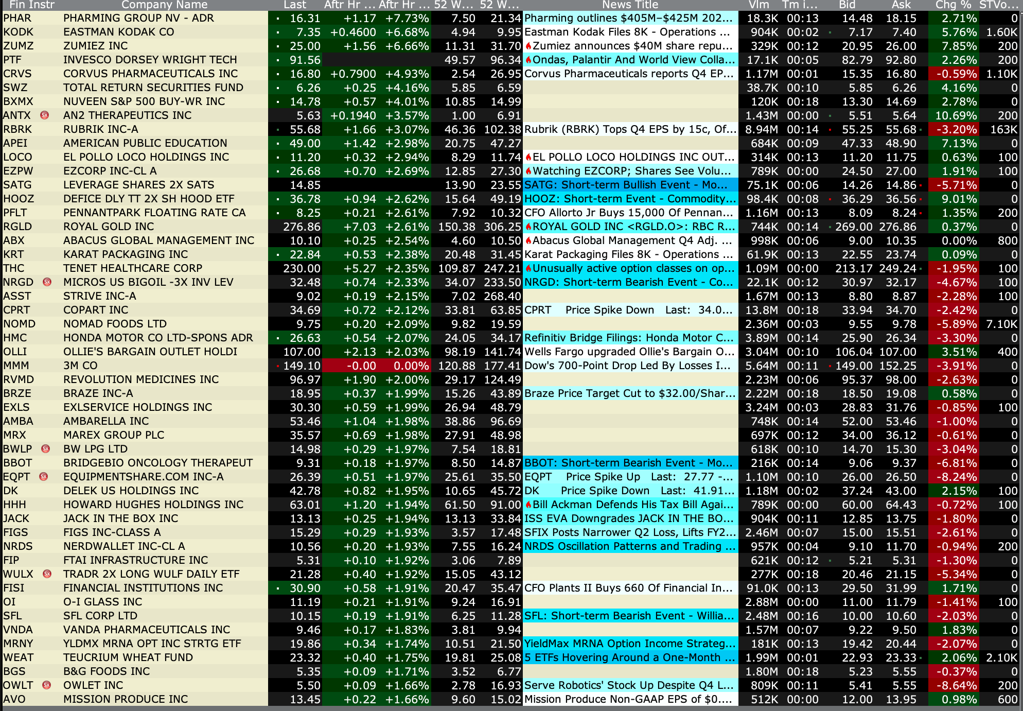 Thursday's After-Hours Advancers and Decliners
