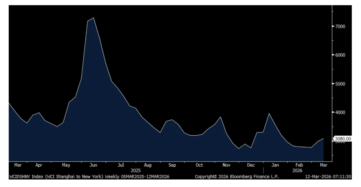 Here is the update with global container shipping prices where the Red Sea is now again a dangerous place to be traversing because of the Houthi threat but we know the Hormuz Strait is the real risk. The Shanghai to NY trip rose $103 to $3,080, though still remains low. A similar rise took place in the route to LA. Shanghai to Rotterdam saw the biggest rise, jumping by 19% w/o/w to $2,443.