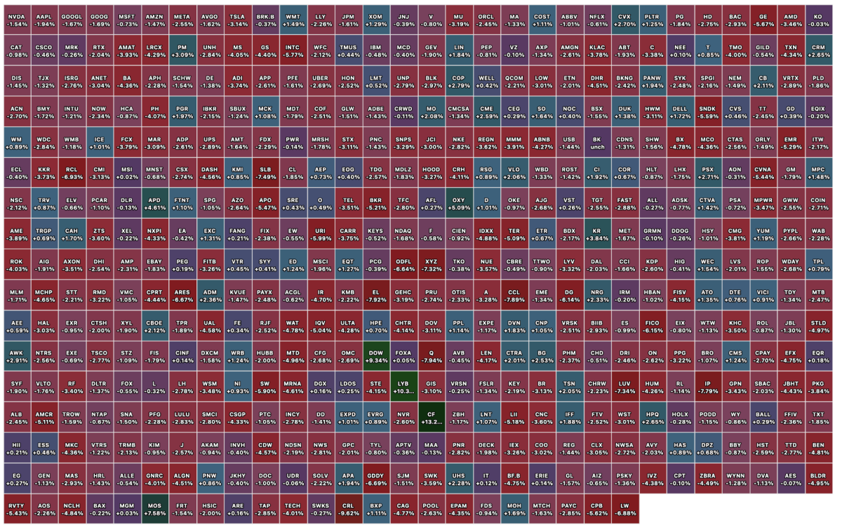 Closing S&P 500 Heat Map