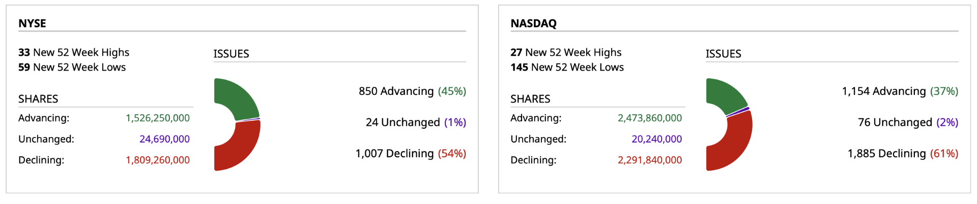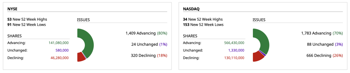 - NASDAQ volume 6% below its one-month average