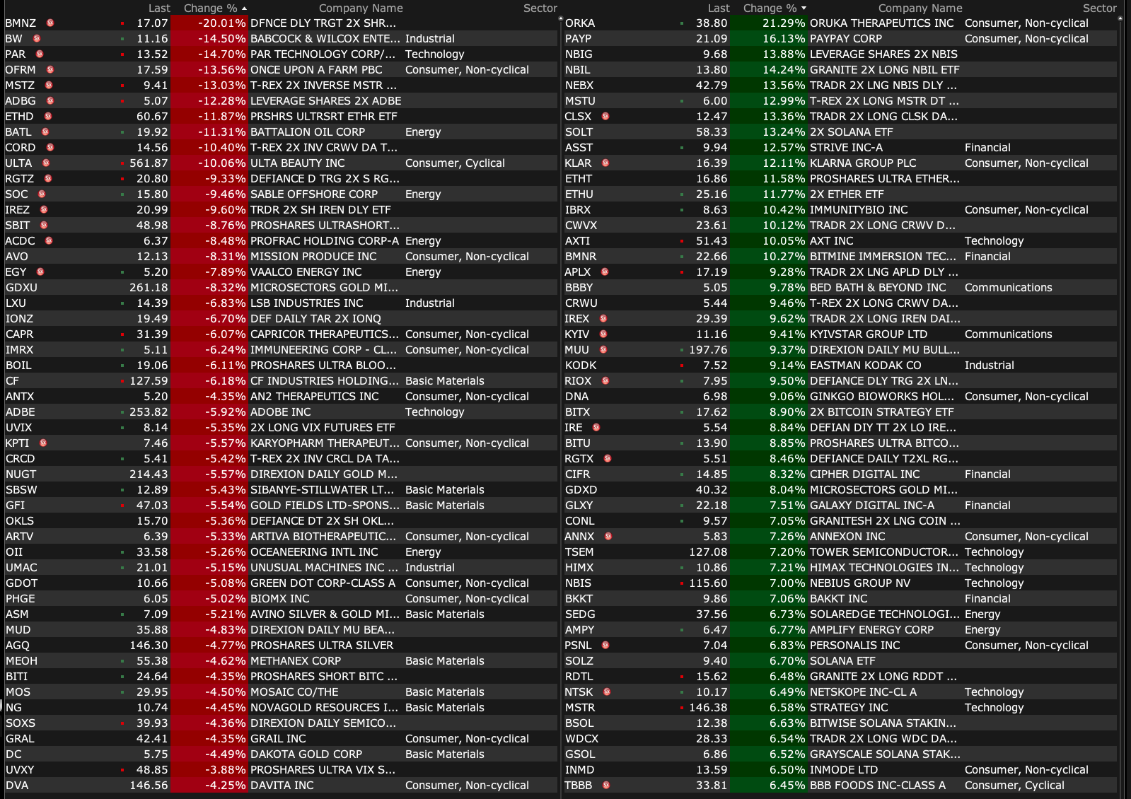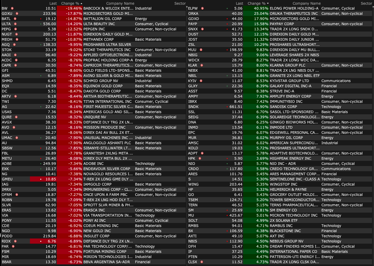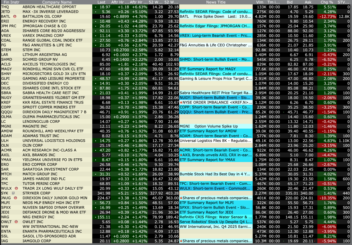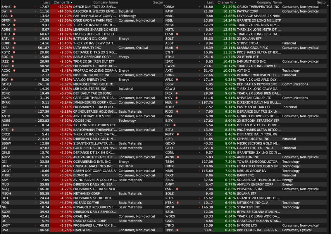 Friday's After-Hours Advancers and Decliners