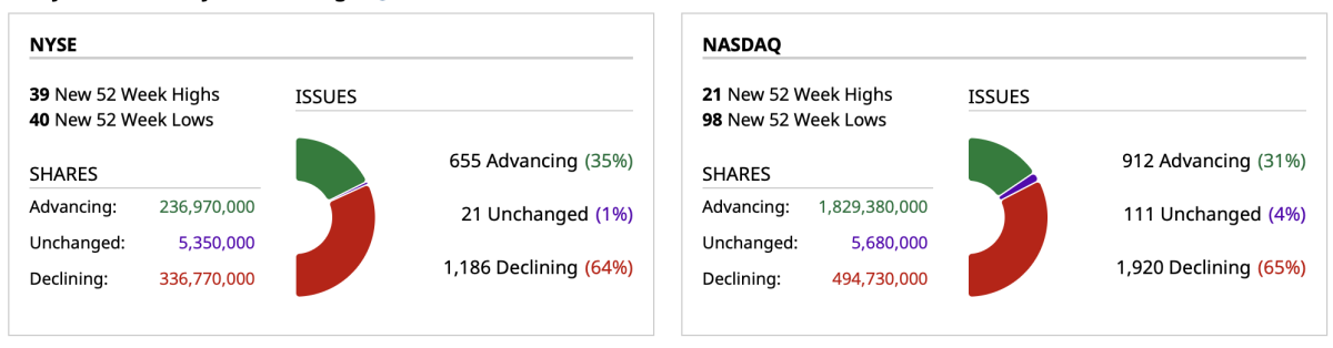 In my Monday column,Growing Less Bearish, I suggested that bearish investor sentiment (and deep oversold on the S&P Short Range Oscillator and McLellan Indicator), defensive positioning, the preponderance of so many stocks suffering 25% or more declines, etc. could contribute to a better market tone in the near term.