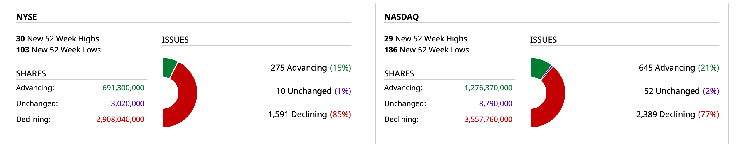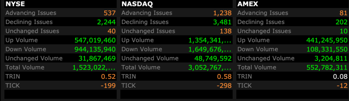 - NYSE volume 42% above its one-month average;