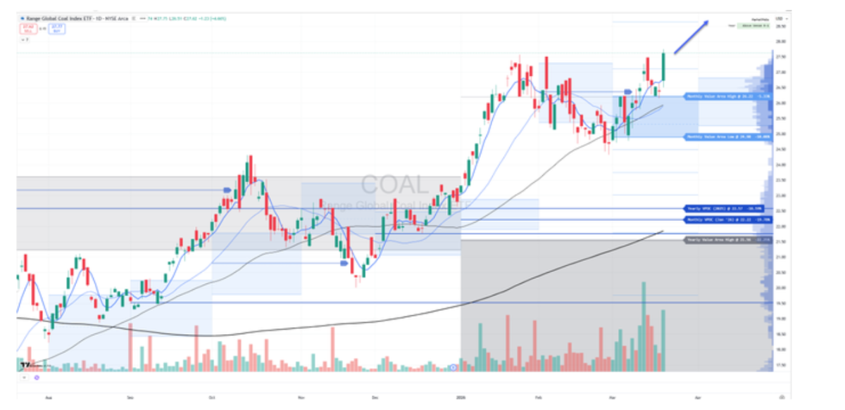 The Range Global Coal ETF (COAL), launched in January 2024, closed at new all-time highs and posted its best day of the year.