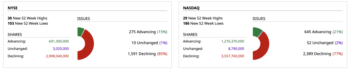 - NASDAQ volume 7% below its one-month average;