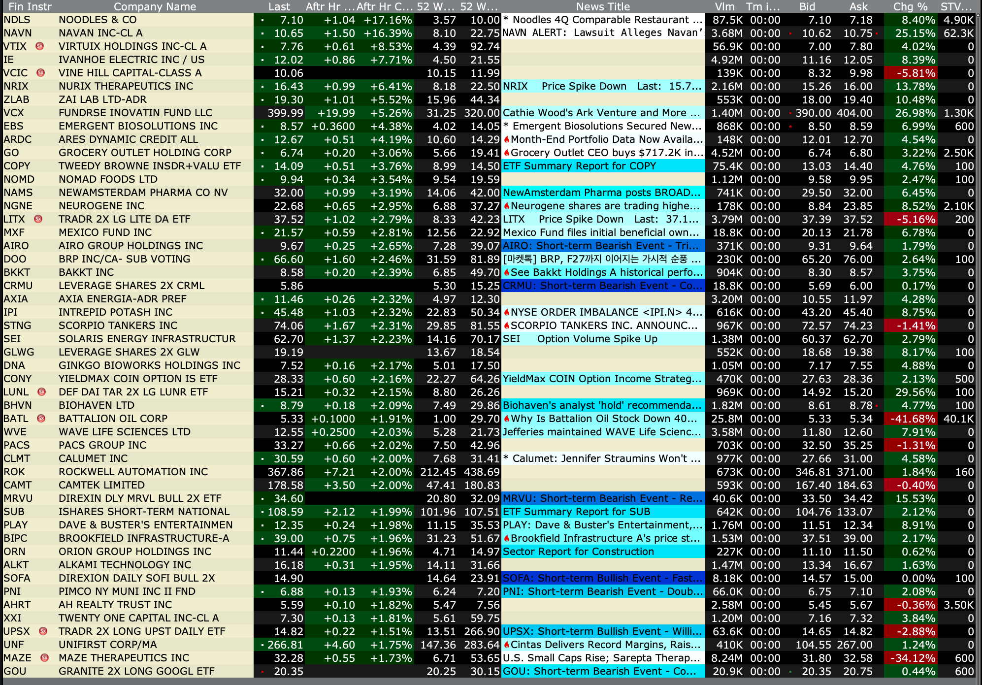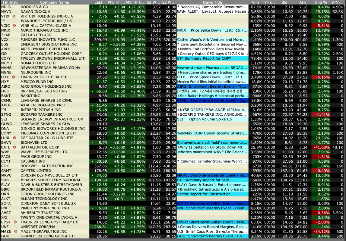 Wednesday's After-Hours Advancers and Decliners