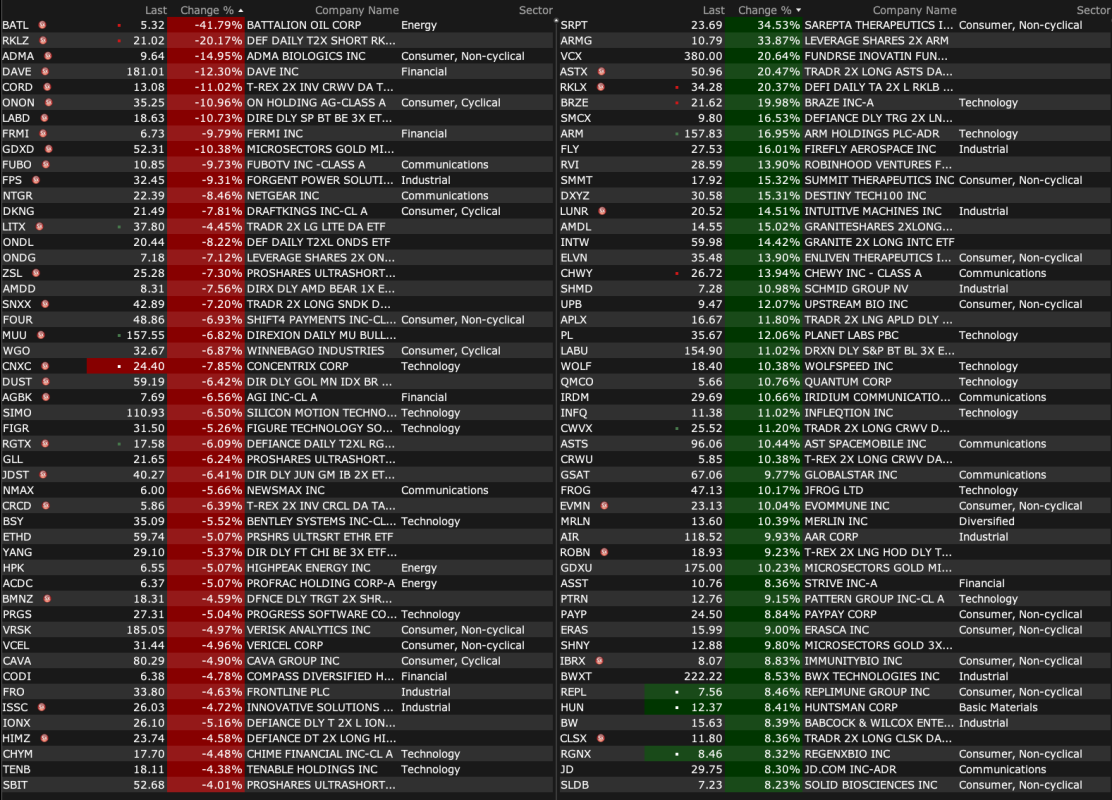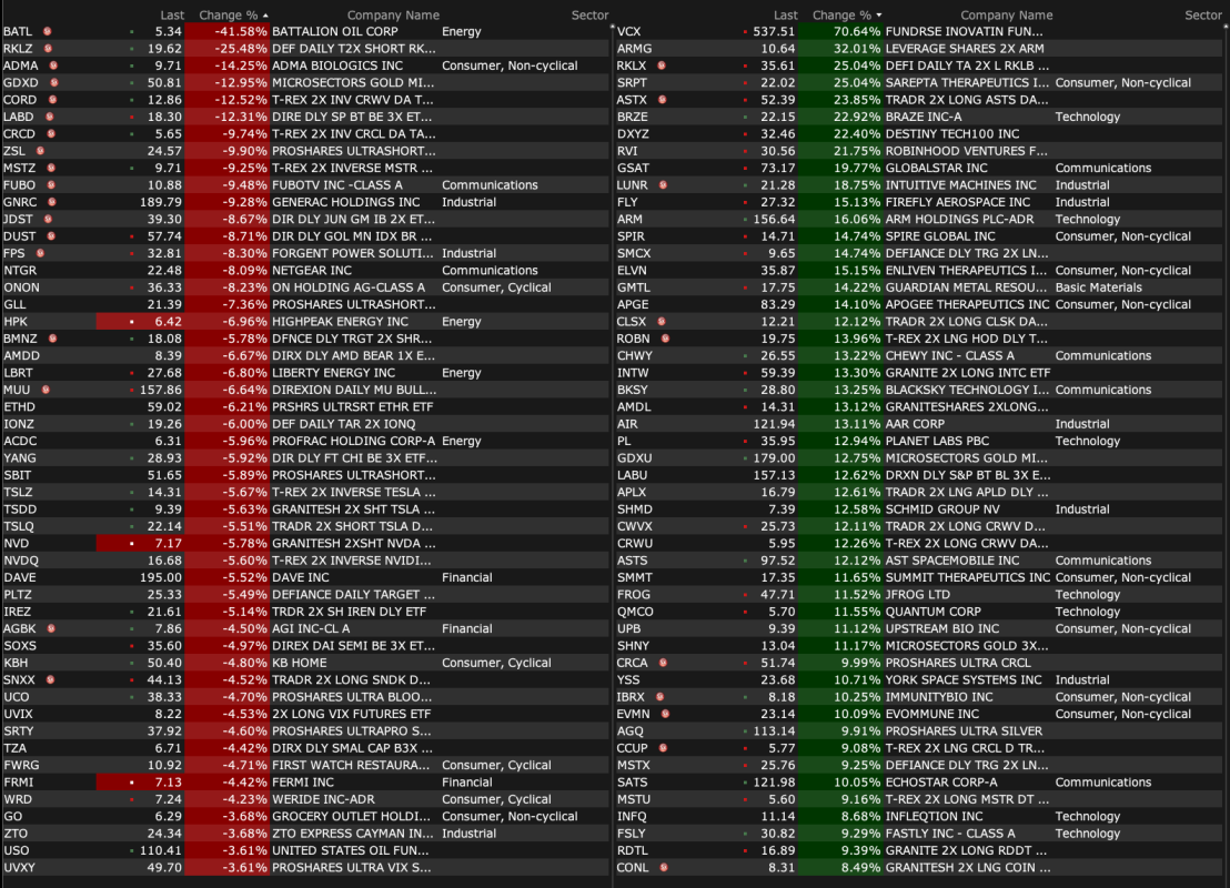 - VIX index: down 5.86% to 25.37