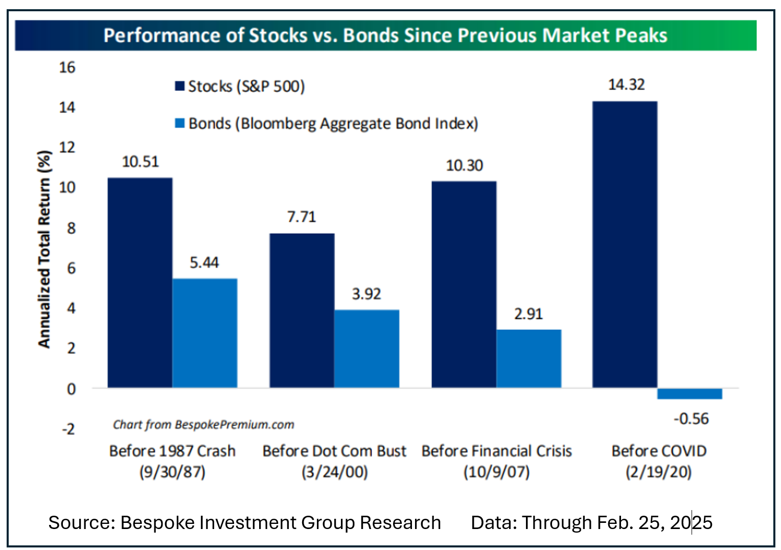 Continuous holders obtained total returns of 10.51% from Sep. 30, 1987 right through Feb. 25, 2025. That compared with just 5.44% annualized for owners of the bond index who experienced less volatility [but made 48.23% less than equity owners who simply sat tight].