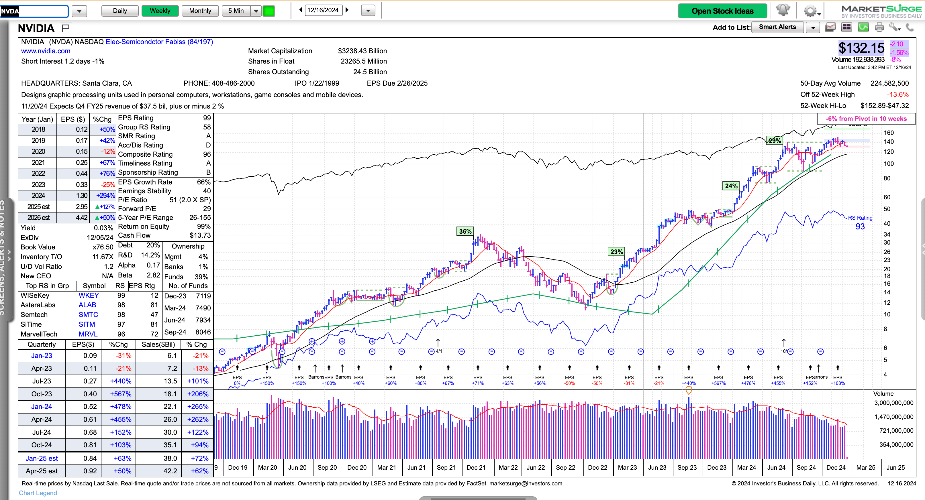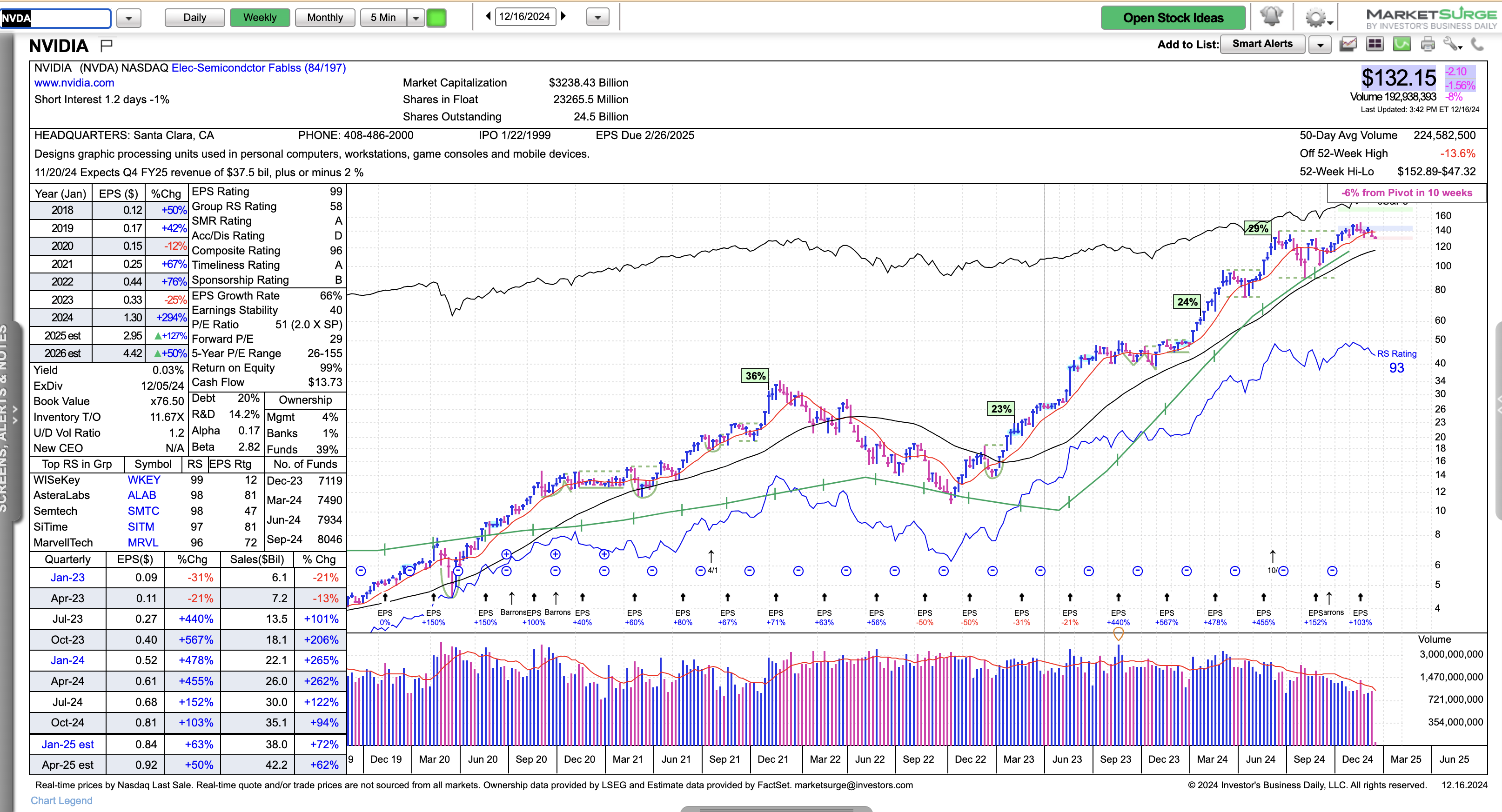 Here’s a chart of Nvidia (NVDA) through December 2024. Investors couldn't get enough of it.