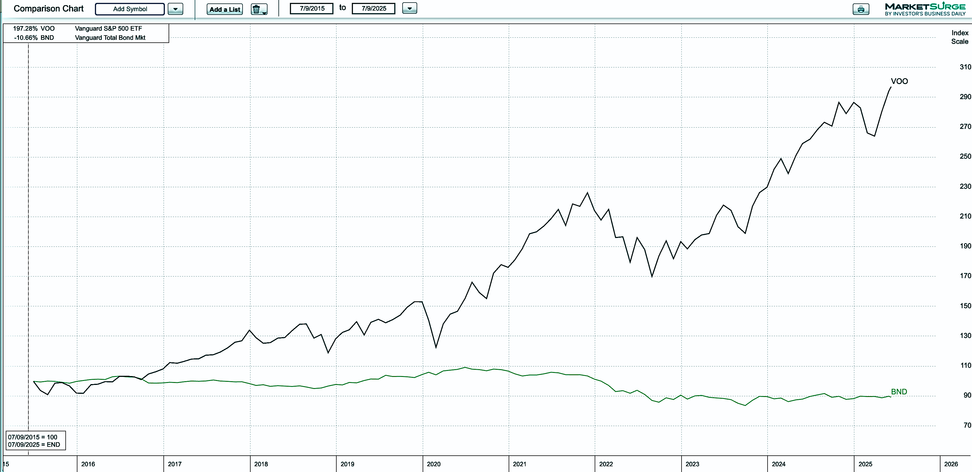 Consider the classic 60/40 portfolio using VOO and BND that I mentioned above.