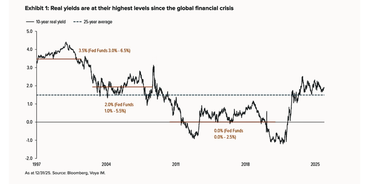 In a January note, “3 Risks, 3 Opportunities in Fixed Income for 2026,” Jeffrey Hobbs, CFA, Voya’s chief investment officer for fixed income, wrote that elevated real yields are reshaping portfolio construction.