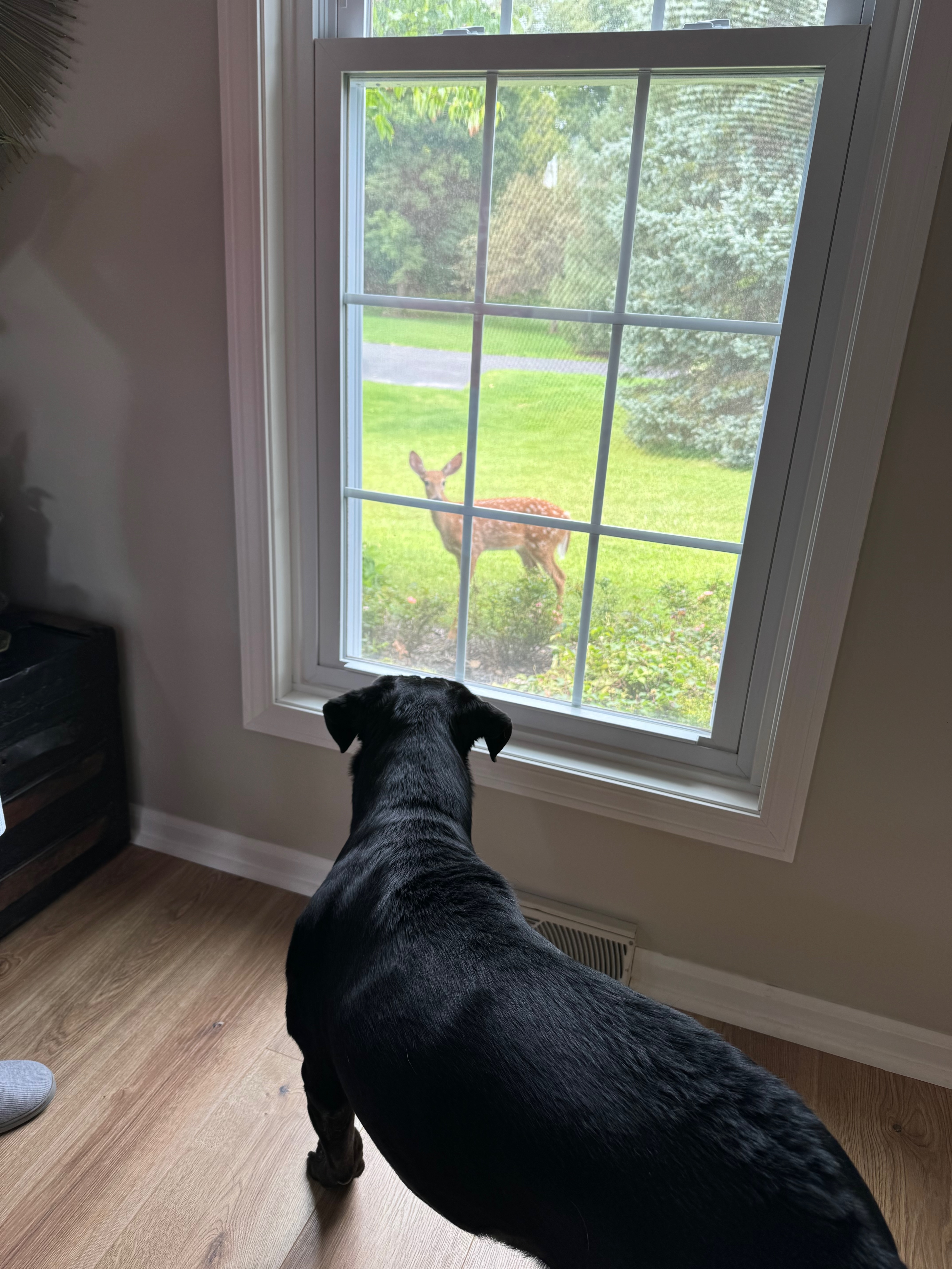 While this happened, my black lab, Annie, stared out the window, mesmerized. She couldn’t look away, but she wasn’t freaking out and barking or growling, either.