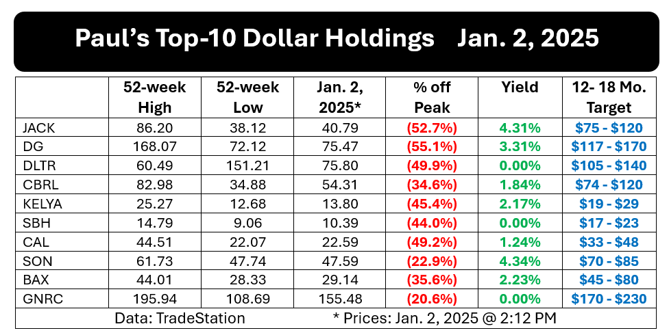 Here is an updated version of my current top-10 holdings ranked in order by dollar value.