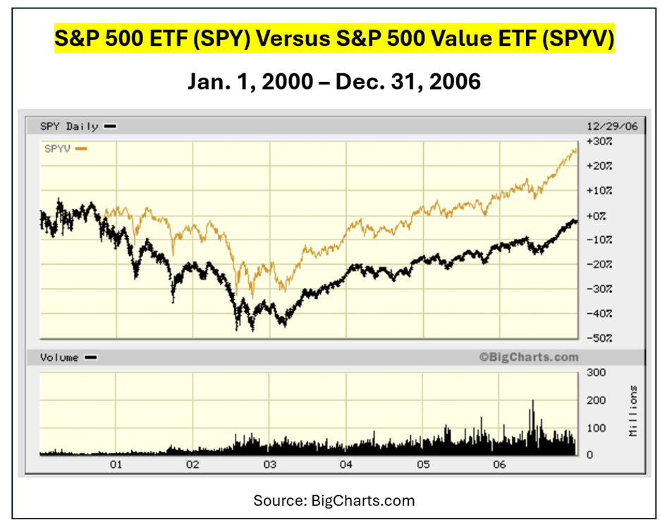 The chart below details how the S&P 500 Value ETF SPYV did versus the more wildly held S&P 500 ETF SPY.