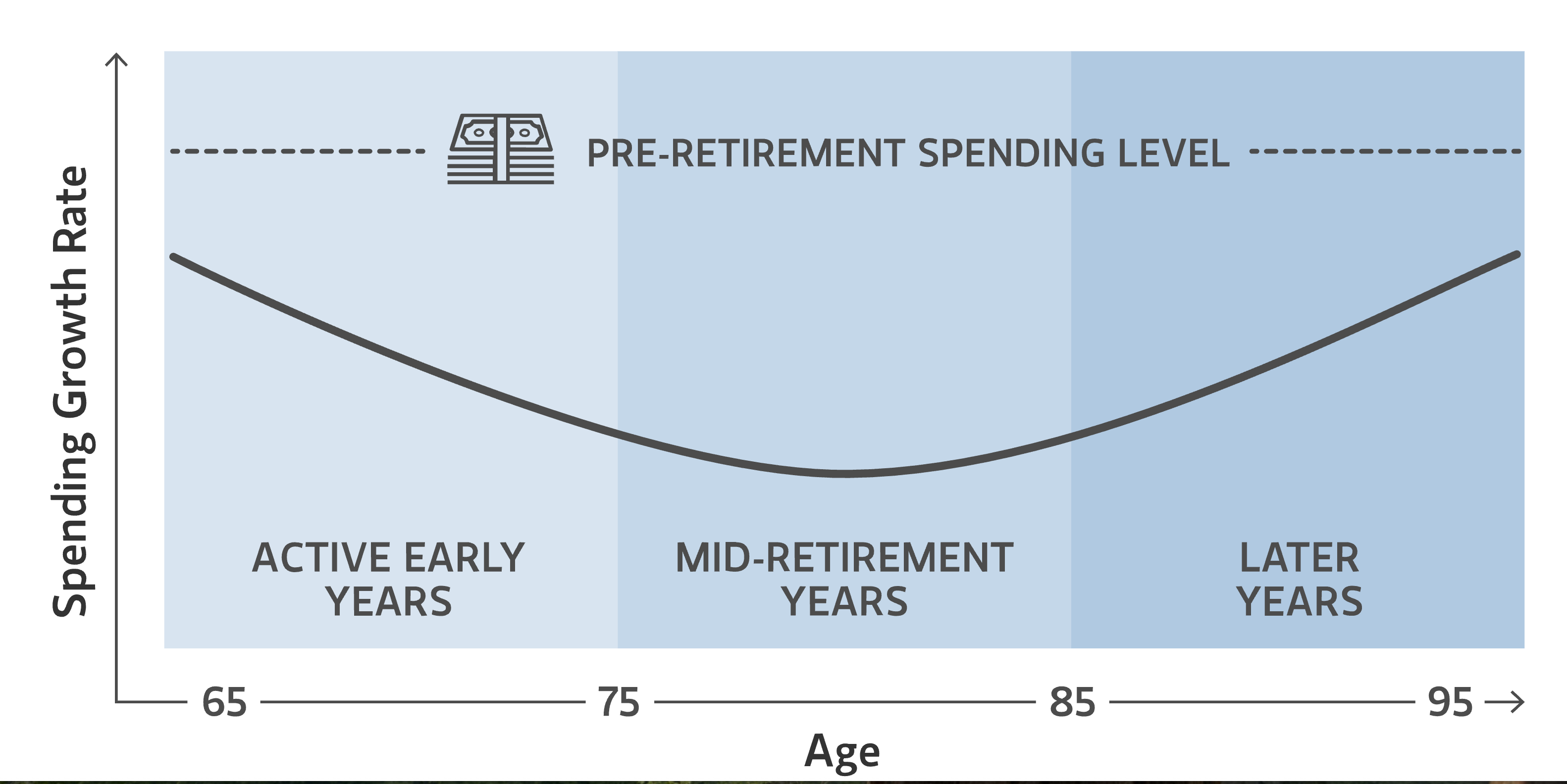 This image from Morgan Stanley illustrates how spending tends to evolve over the course of a retirement that can last 30 years or more.