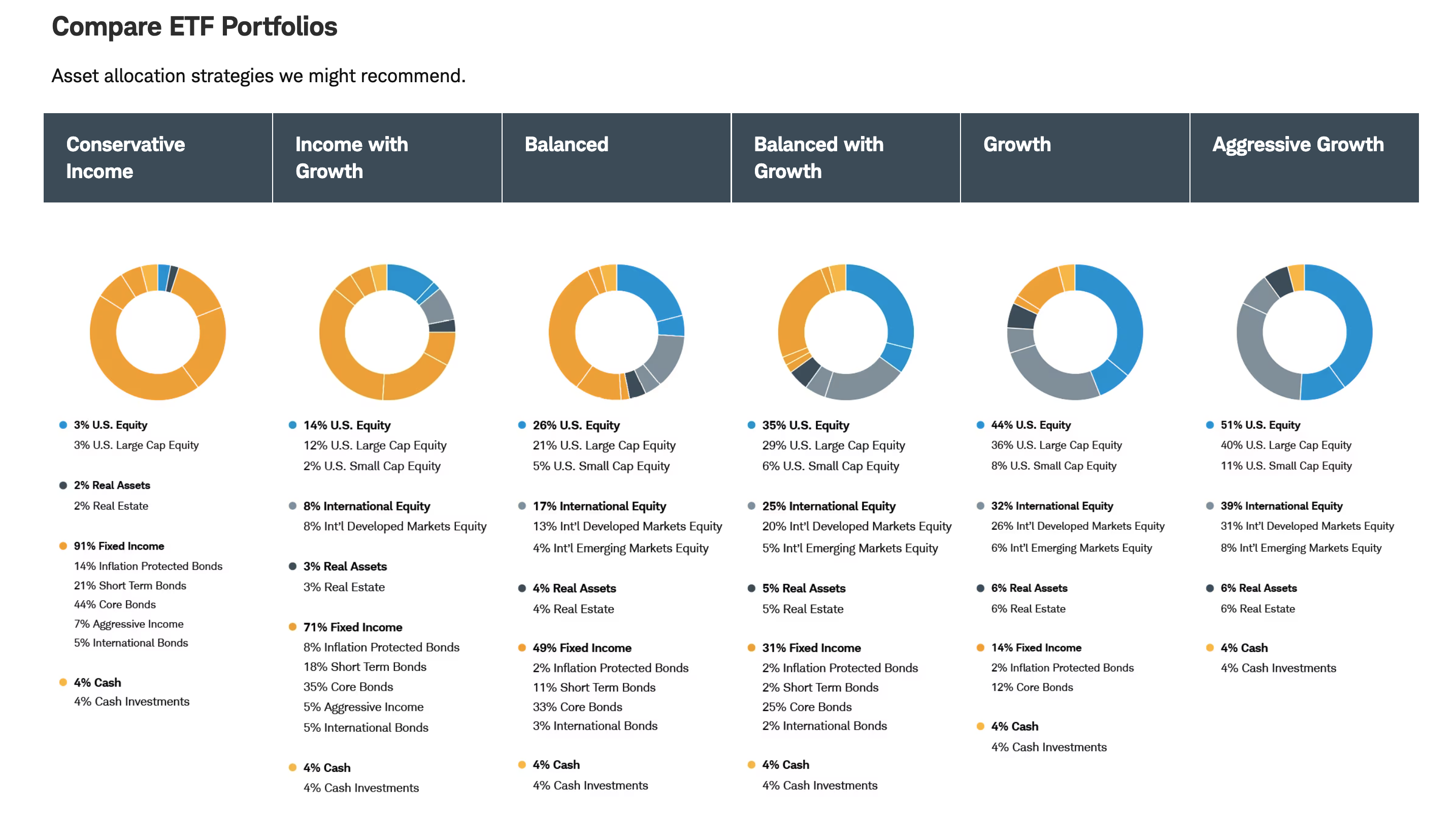 These allocations aren’t just theory; they reflect the typical asset mixes Schwab uses in managed client portfolios.