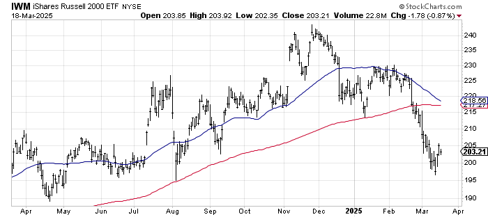 I have never been a big advocate of Golden and Black (Death) Crosses because I have seen them work and not work. But I typically like to acknowledge them. Fifty trading days ago was early January, so any stock or index trading at a lower price today than early January has its 50-day moving average heading down.